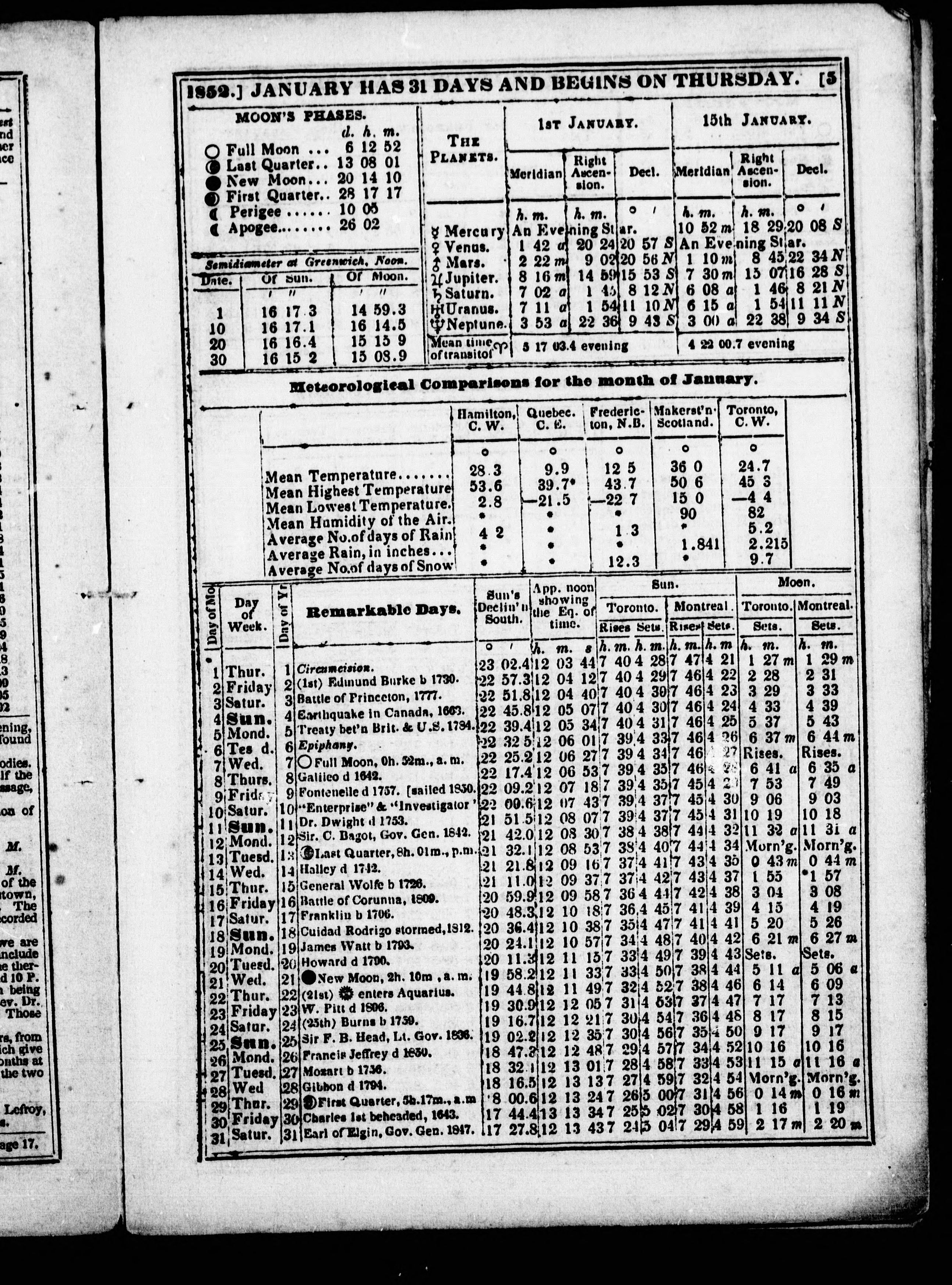 - Scobie's Canadian almanac and repository of useful knowledge, for the year 1852 being leap year : containing full and authentic commercial, statistical, astronomical, departmental, ecclesiastical, educational, financial, and general information.