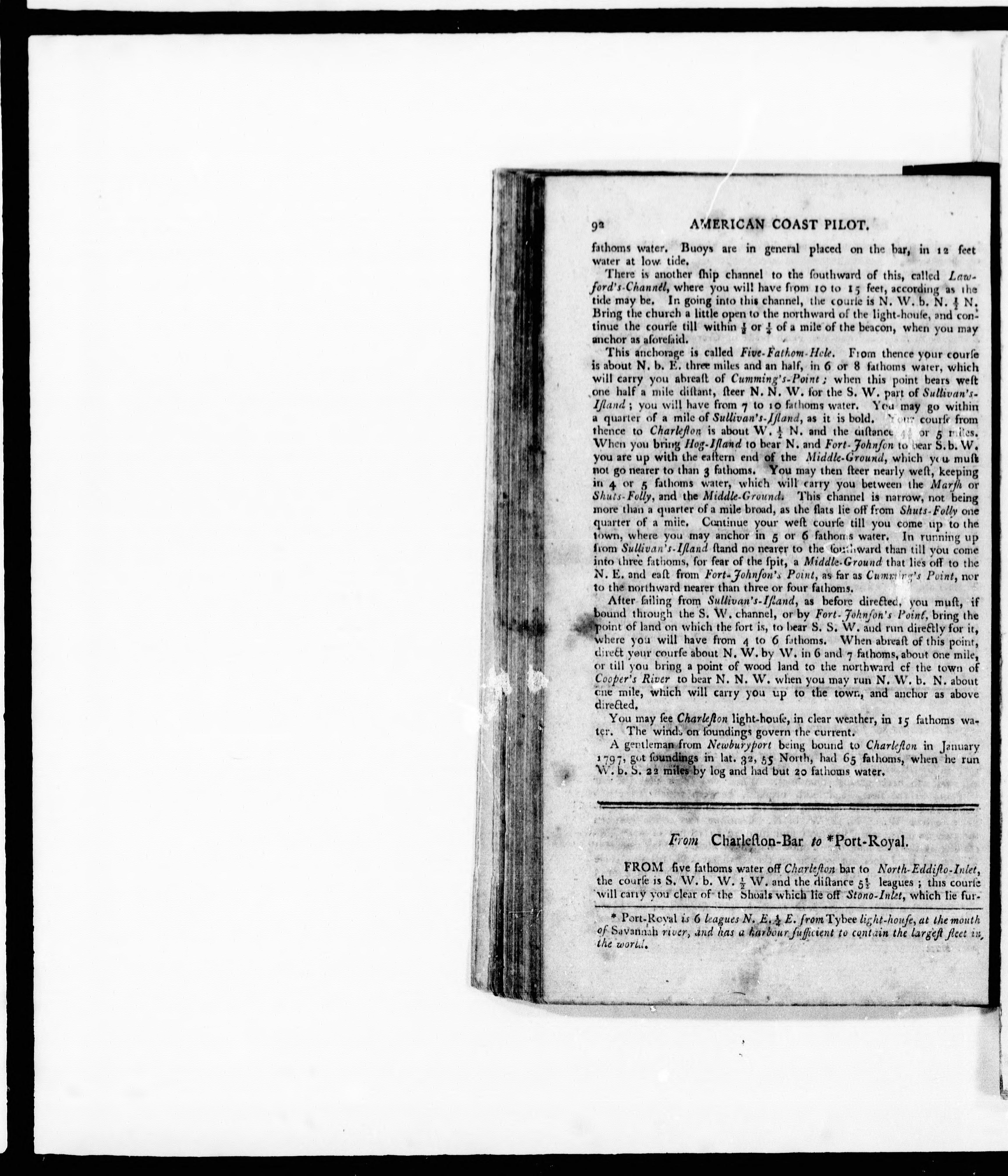 The American coast pilot : containing the courses and distances between the principal harbours, capes and headlands, from Passamaquoddy, through the Gulf of Florida : with directions for sailing into the same, describing the soundings, bearings of the light-houses and beacons from the rocks, shoals, ledges, &c. : together with the courses and distances from Cape Cod and Cape Ann to Georges' Bank, through the south and east channels, and the setting of the currents with latitudes and longitudes of the principal harbours on the coast, together with a tide table