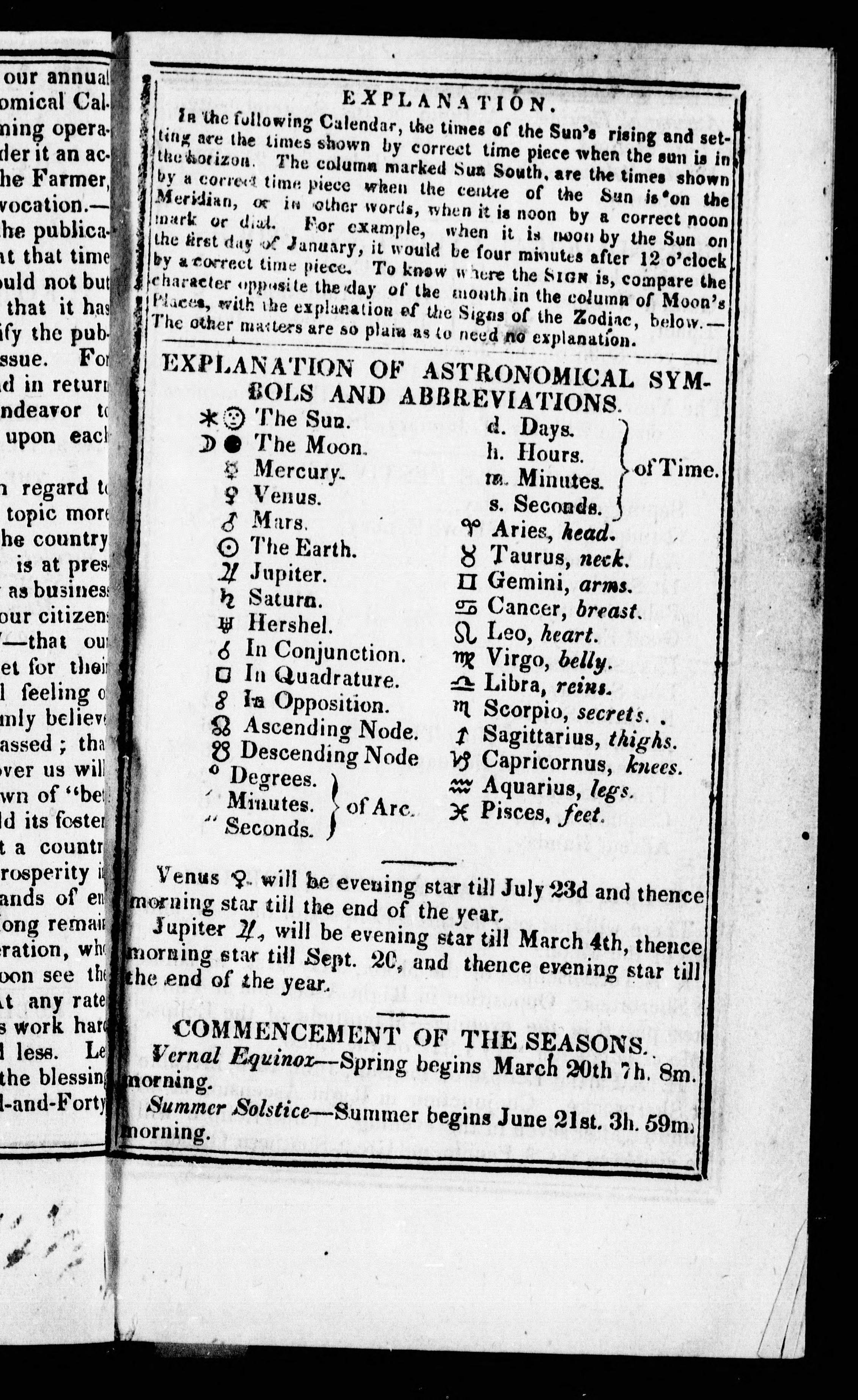 The Canadian farmers' almanac for the year of Our Lord 1844 : being bissextile or leap year, and, till the 20th day of June, the 7th year of the reign of Her Most Gracious Majesty Queen Victoria, calculated for the meridian of Sherbrooke, in latitude 45@ 25' N. and longitude 71@ 55' W. from the Royal Observatory, Greenwich, but arranged so as to serve without essential variation for every other portion of Canada