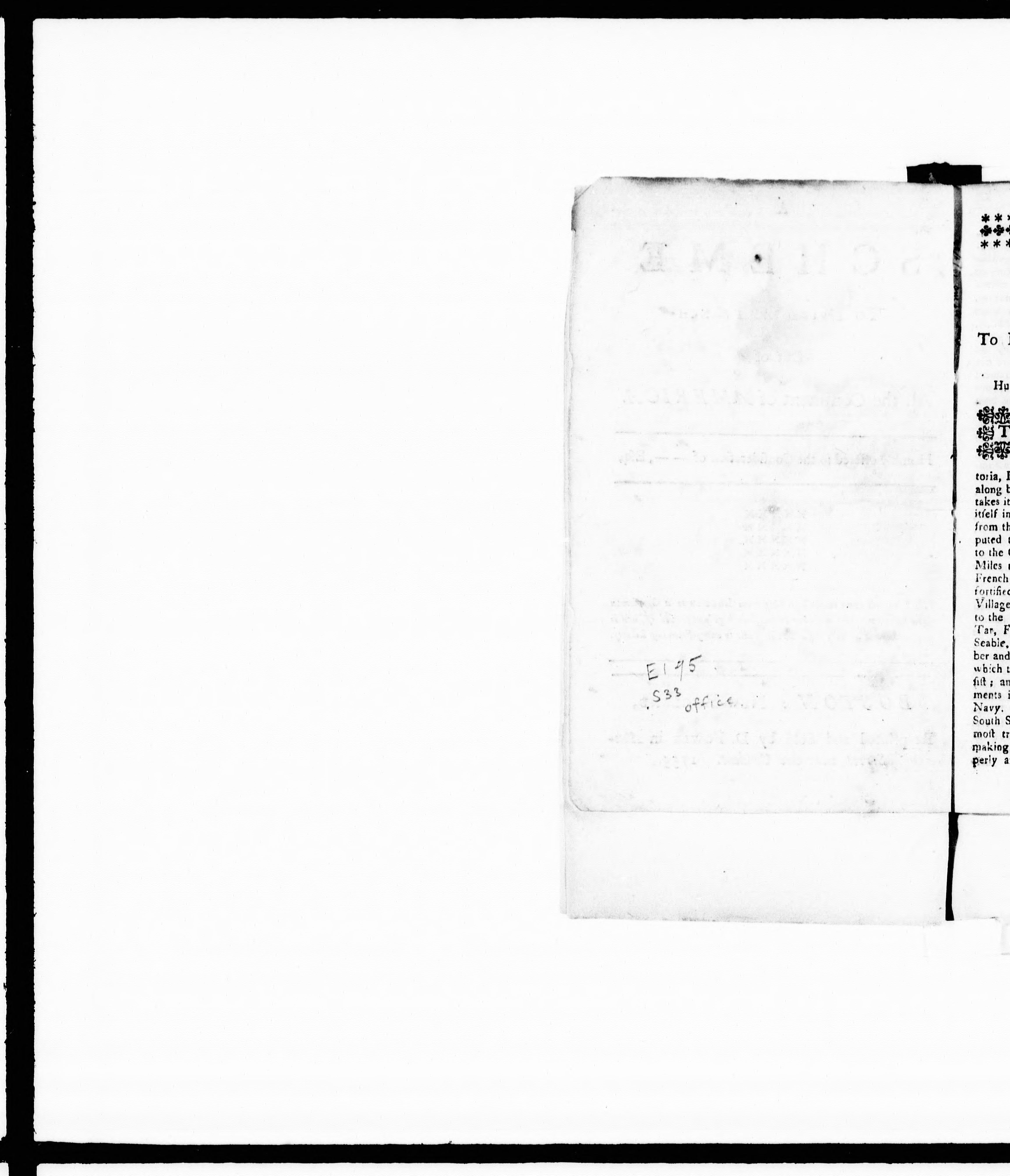 "This Pamphlet came in the last ship from London to a gentleman in Boston ..."