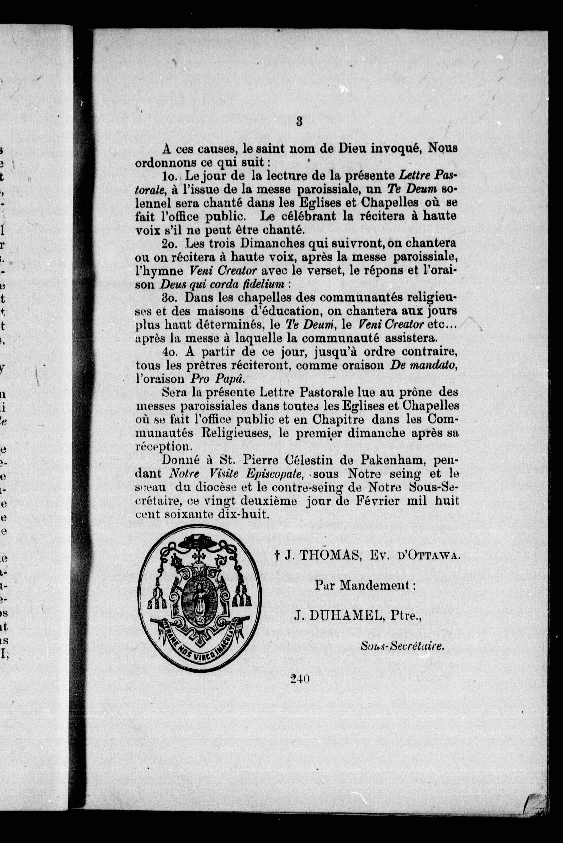 Lettre pastorale pour annoncer l'élection d'un nouveau pape /