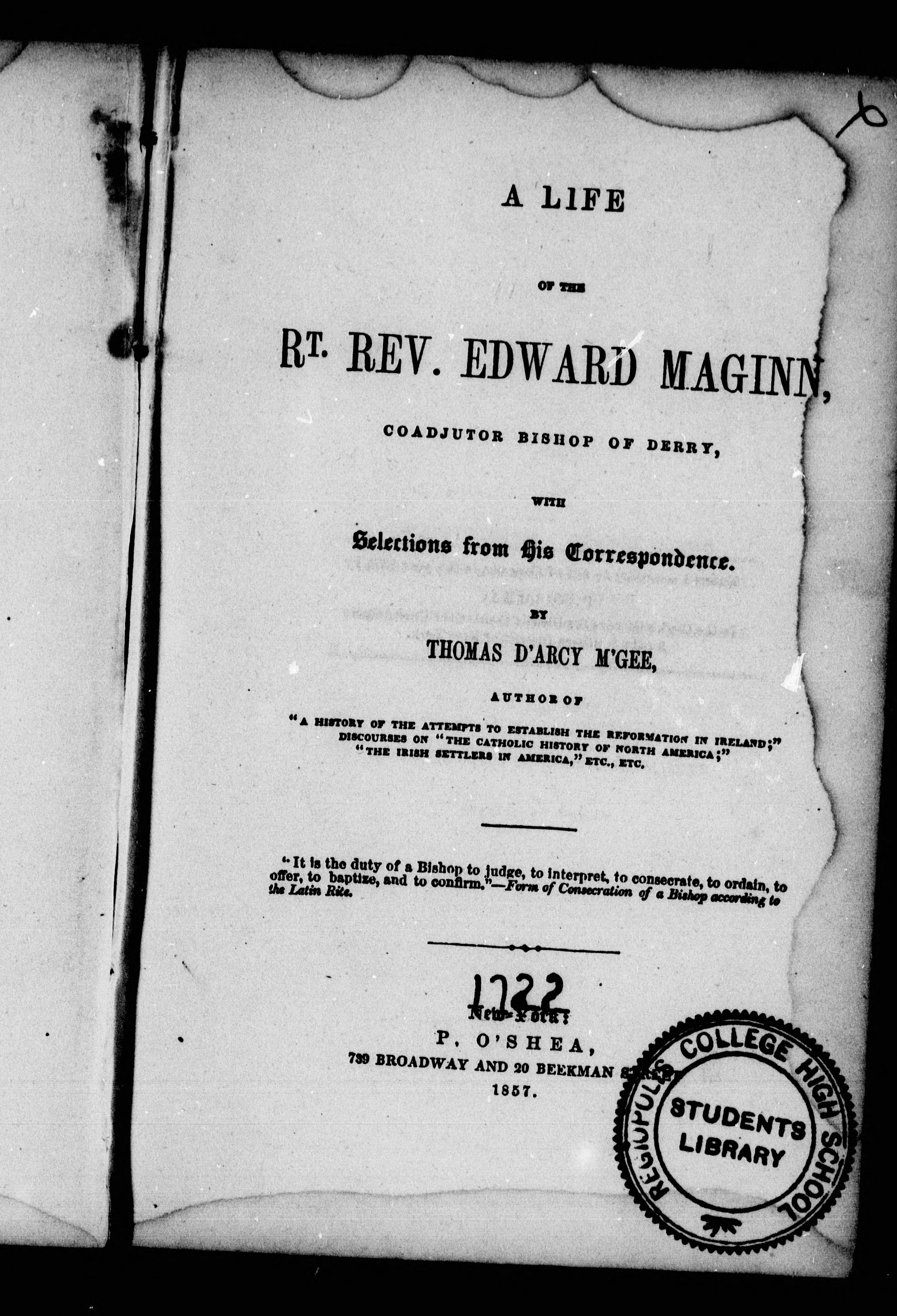 A life of the Rt. Rev. Edward Maginn, coadjutor bishop of Derry : with selections from his correspondence