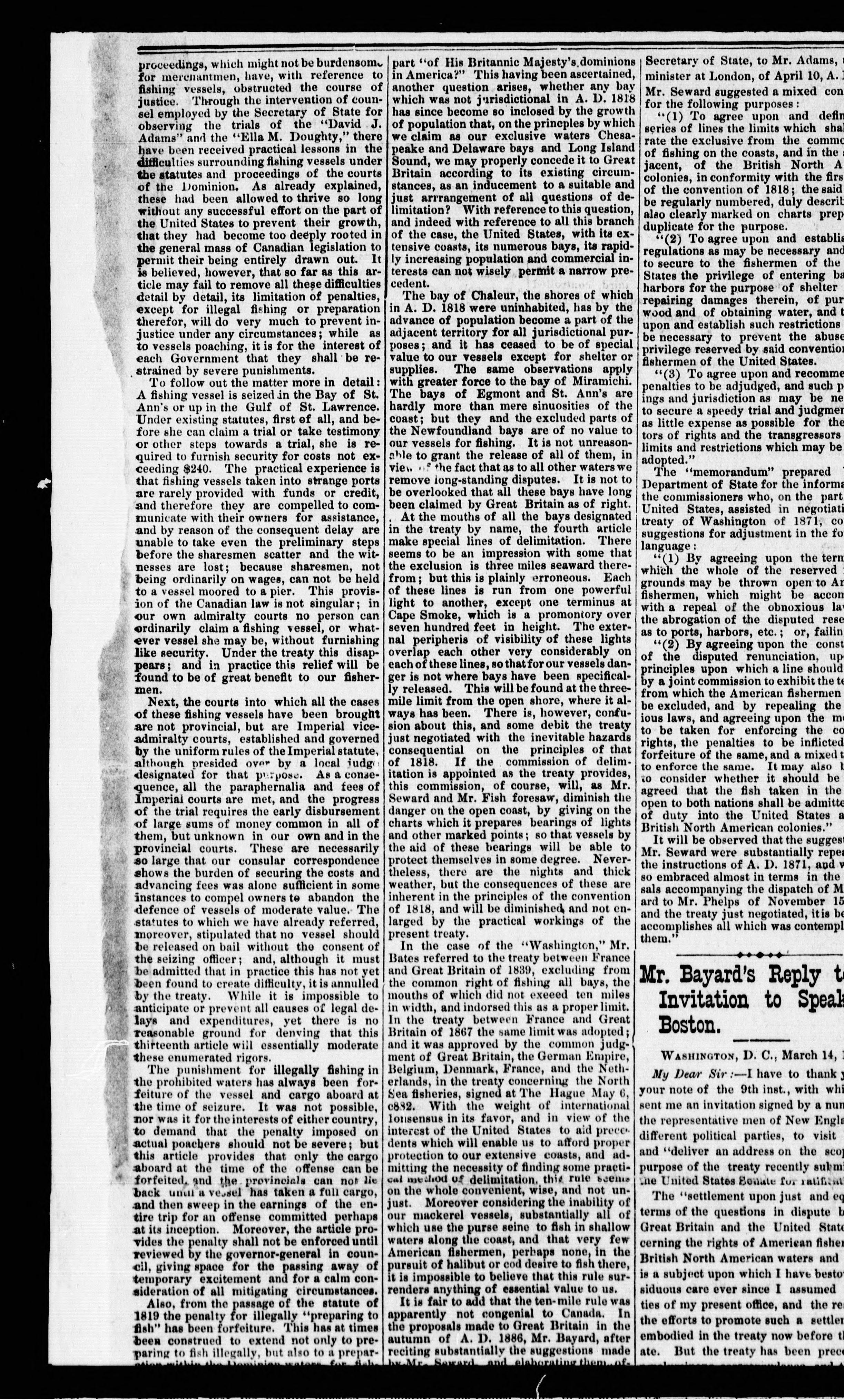 Collection of documents concerning the Treaty of Washington of 1888, including extracts from the message of President Cleveland transmitting the treaty.