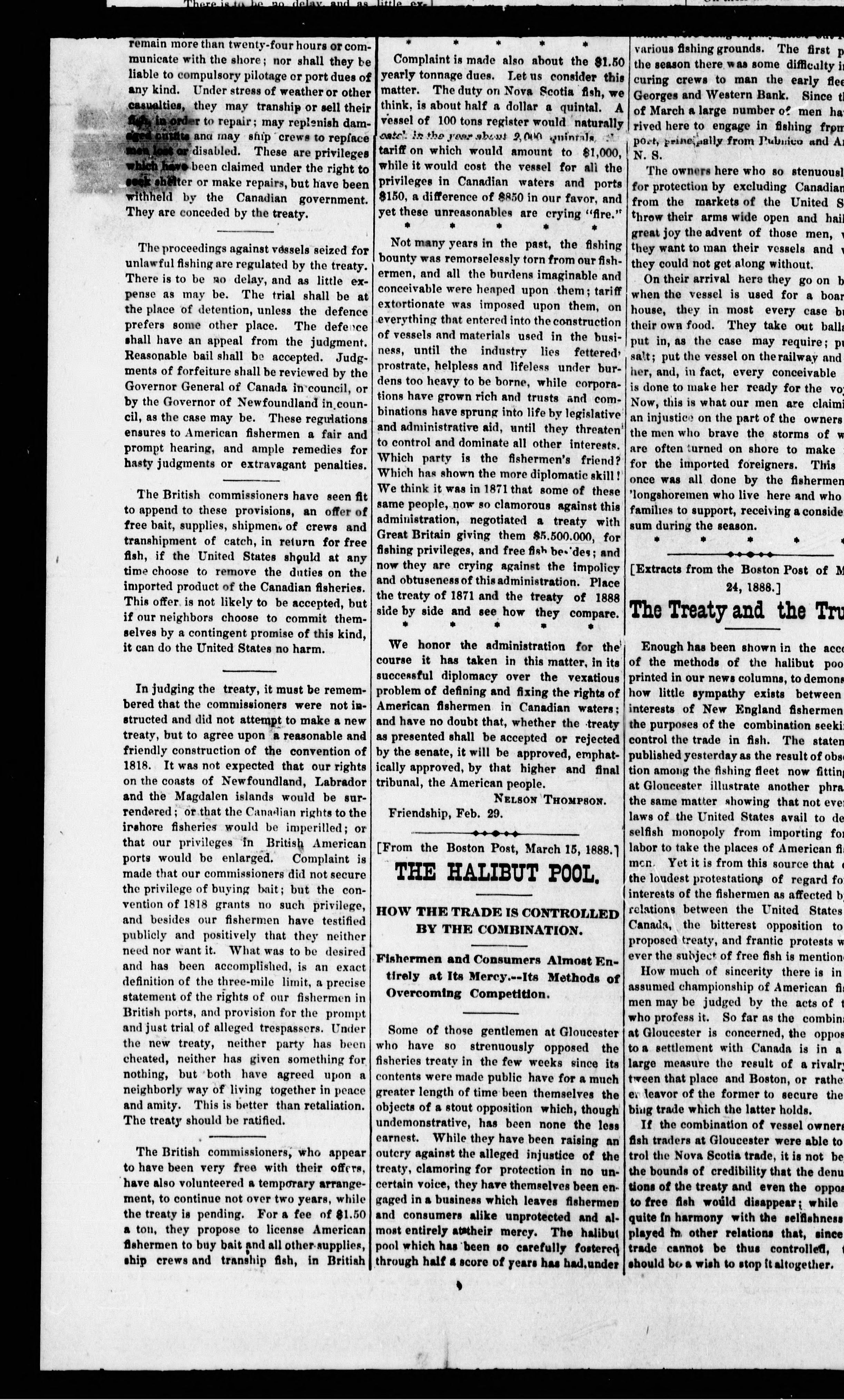 Collection of documents concerning the Treaty of Washington of 1888, including extracts from the message of President Cleveland transmitting the treaty.