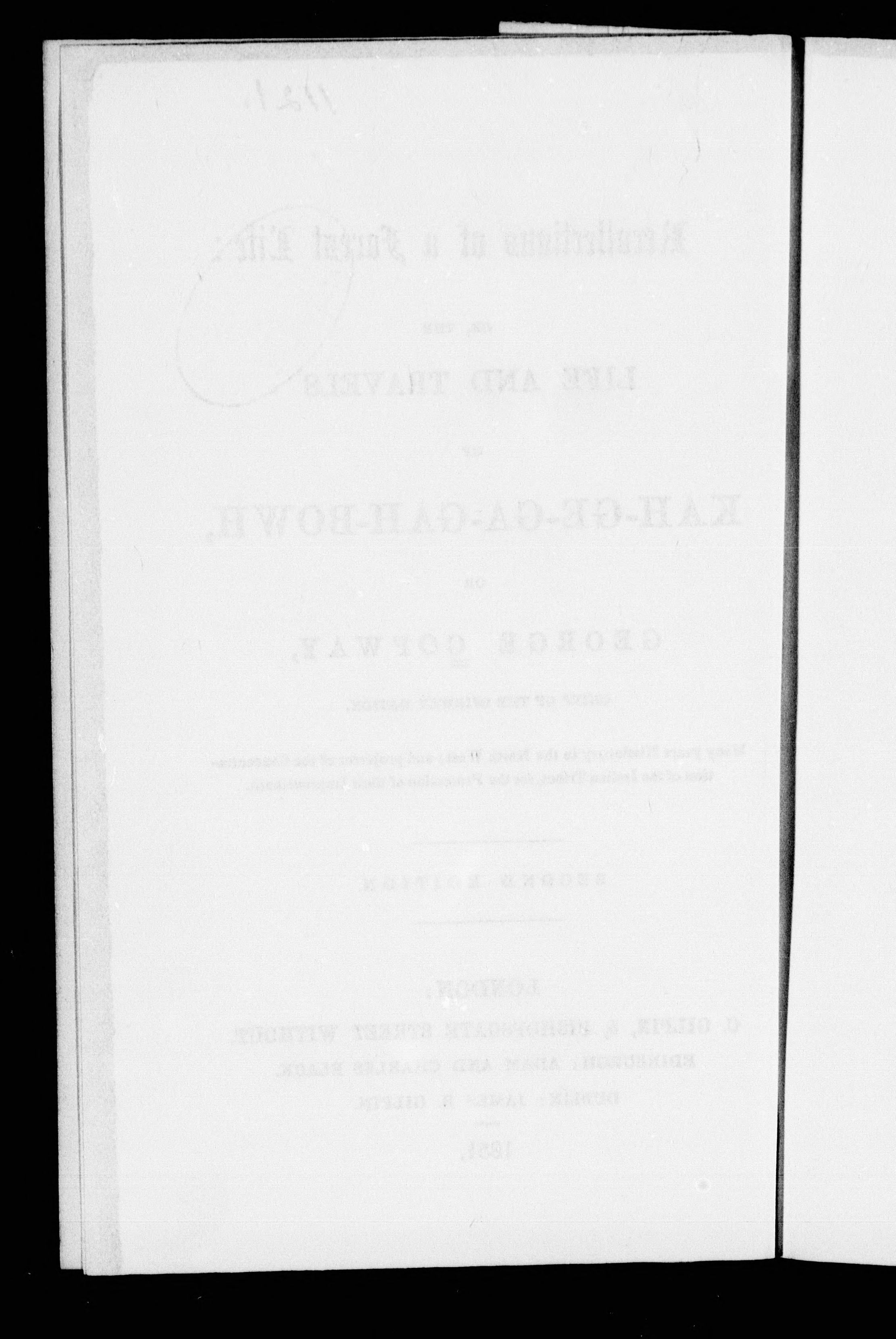 Recollections of a forest life, or, The life and travels of Kah-ge-ga-gah-bowh, or George Copway, chief of the Objiway nation : many years missionary in the north west and projector of the concentration of the Indian tribes, for the promotion of their improvement.