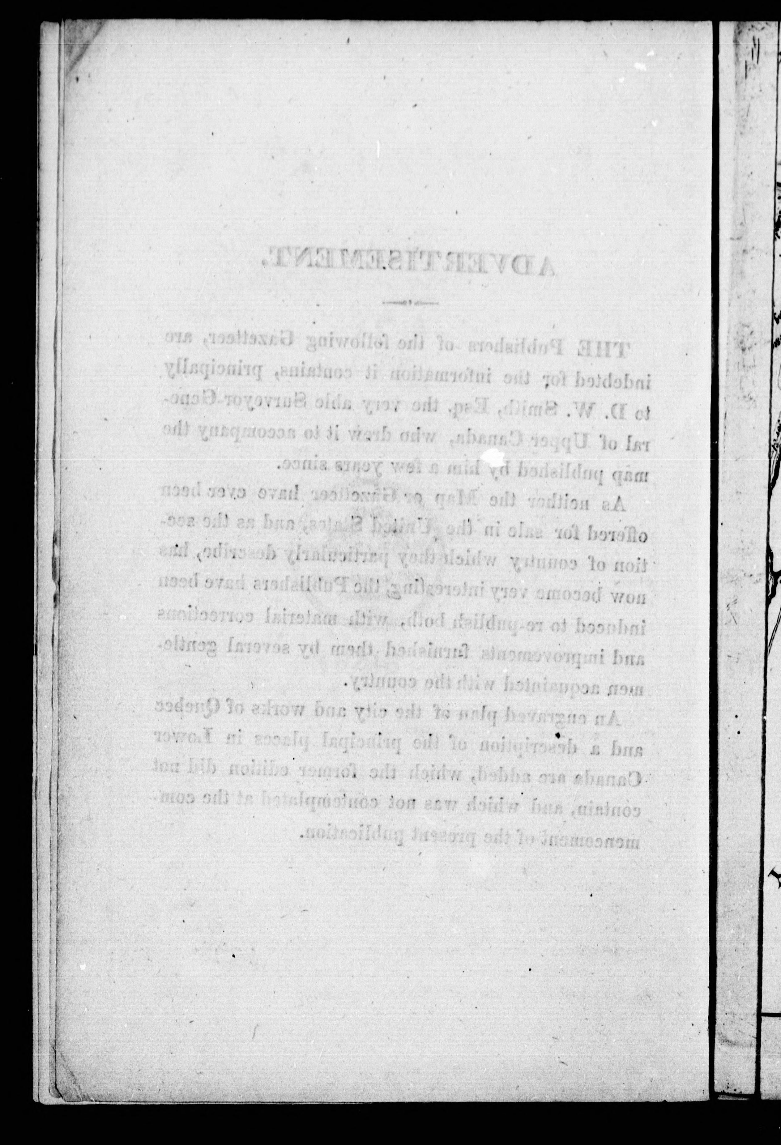 Based upon: A short topographical description of His Majesty's province of Upper Canada, in North America, to which is annexed, a provincial gazetteer / David William Smyth (London, 1799)--A bibliography of Canadiana / Toronto Public Library, numbers 735.