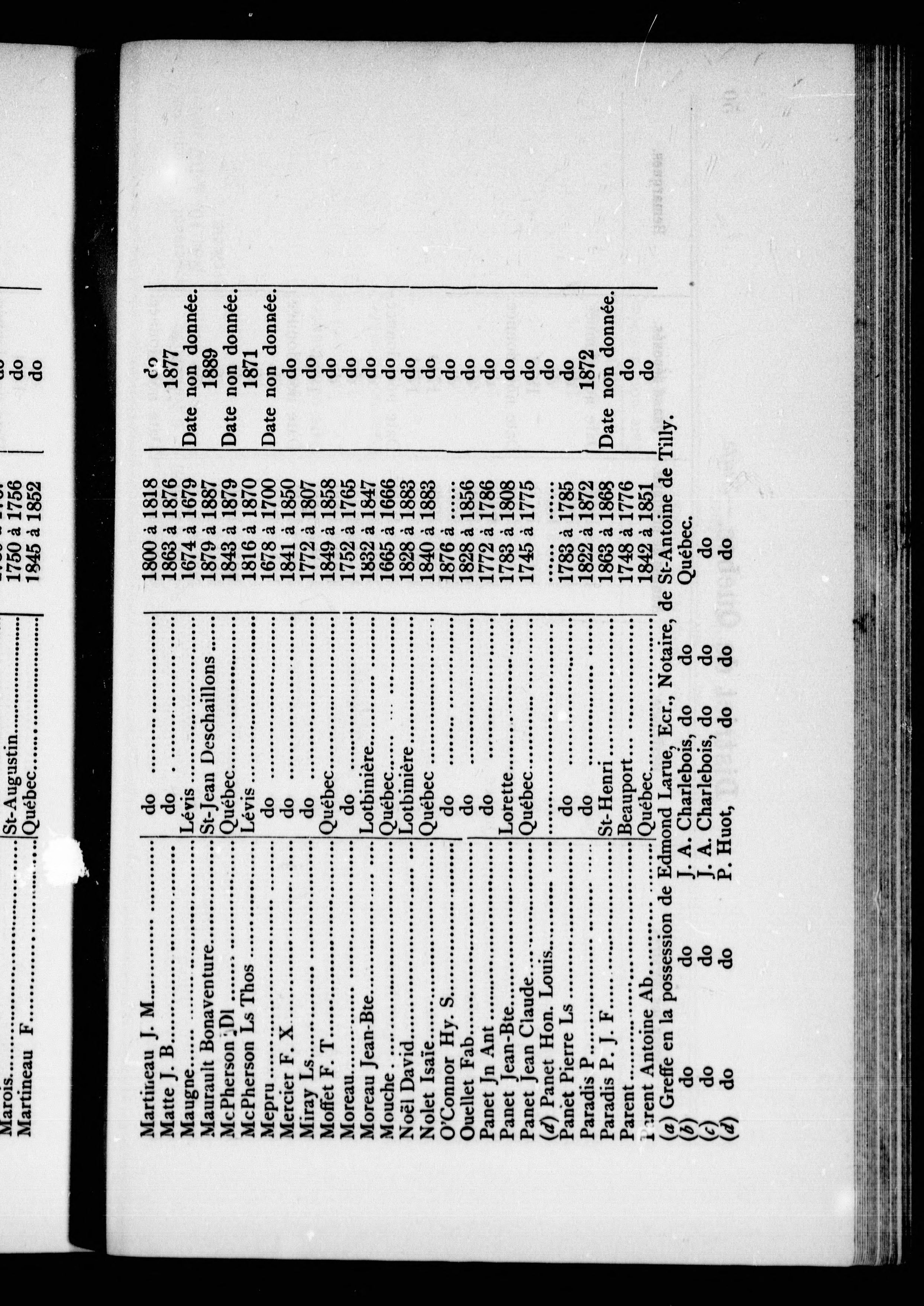 Tableau général des notaires pratiquant dans la province de Québec 1891 :