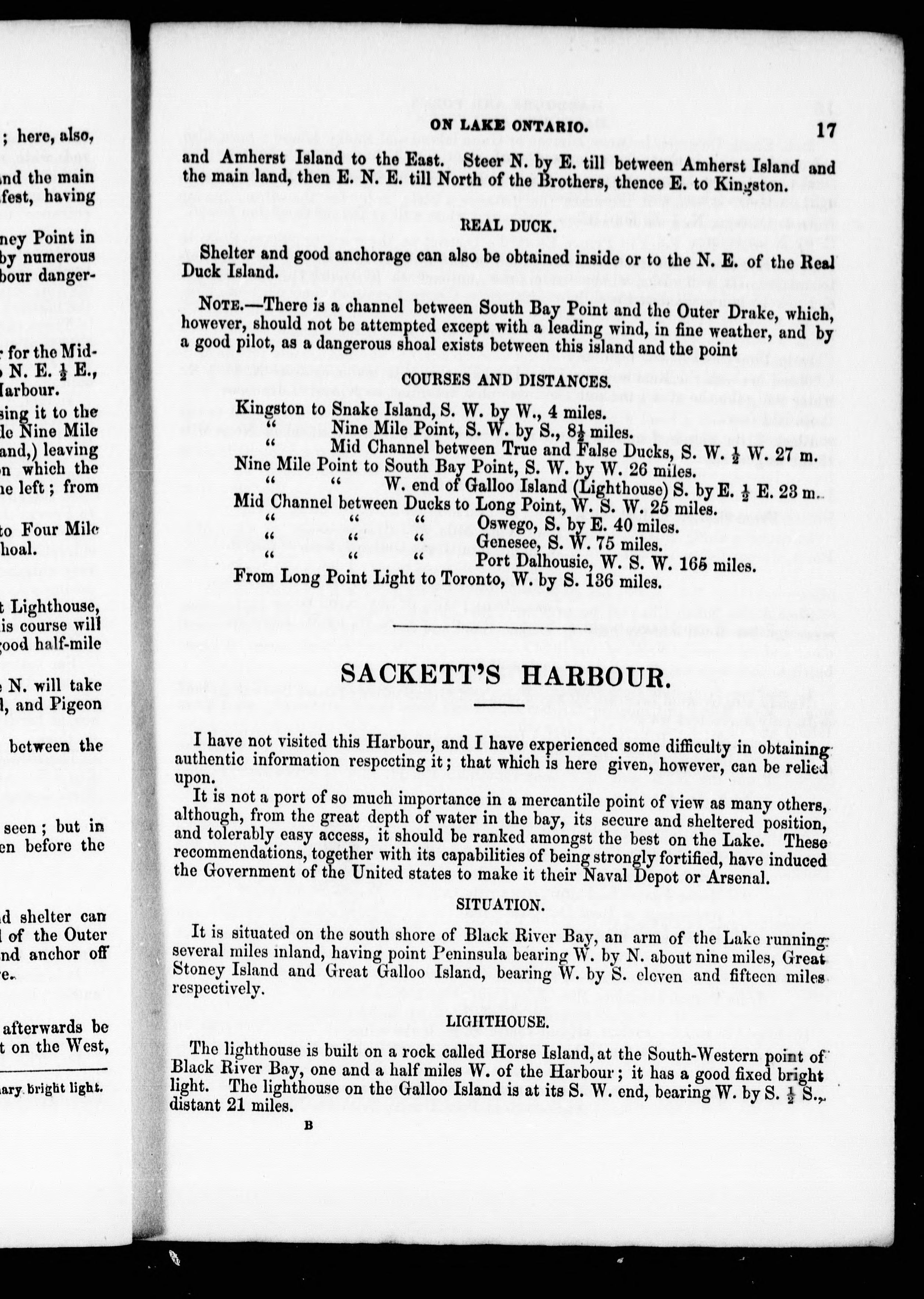 The Harbours and ports of Lake Ontario : in a series of charts, accompanied by a description of each, together with the lighthouses, harbour lights, depth of water, courses and distances & c. & c. : compiled from authentic sources, the charts of Captain Owen and Lieut. Herbert, from recent surveys, as well as from personal observations