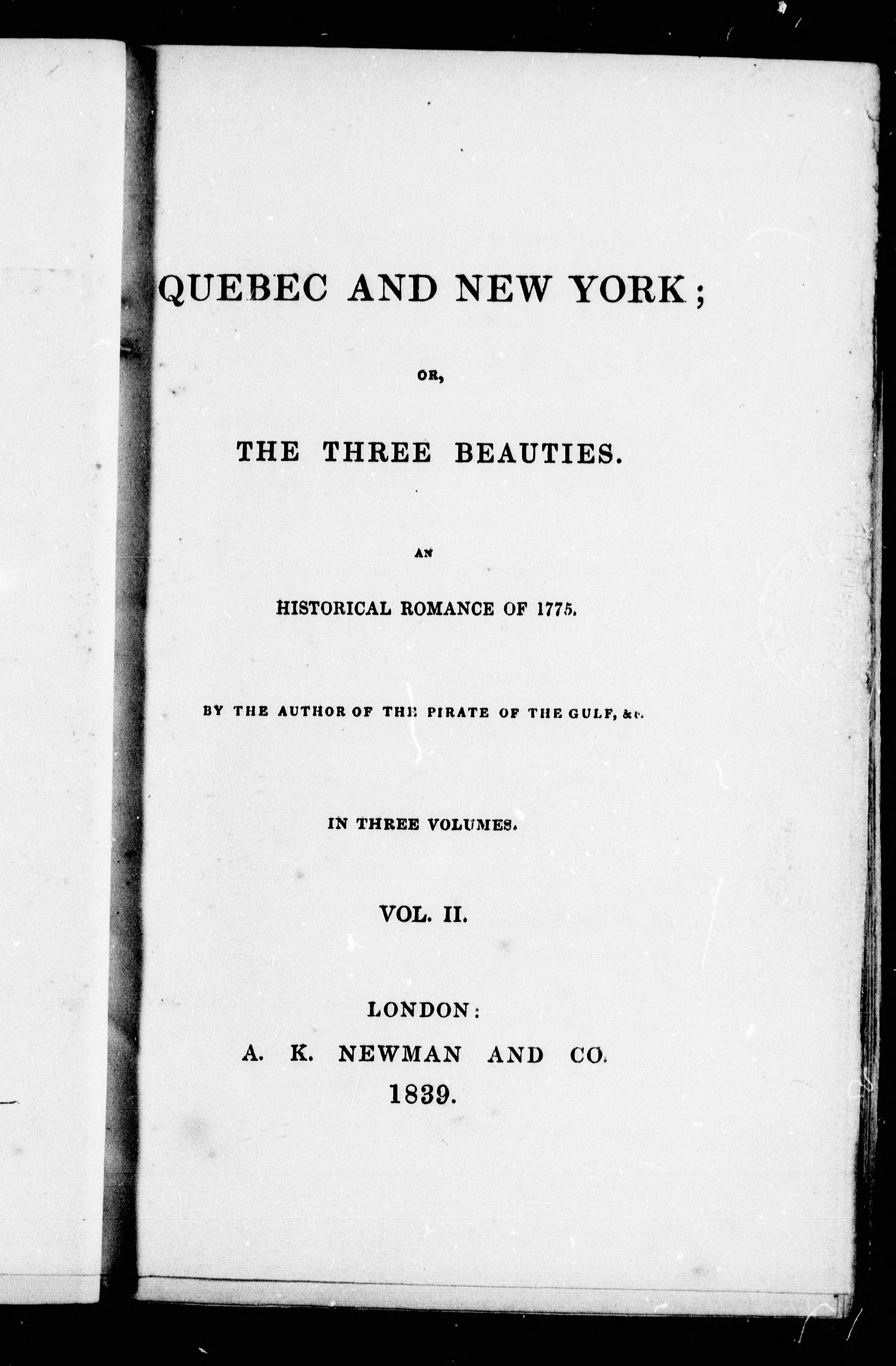Quebec and New York, or, The three beauties : an historical romance of 1775 - Published
