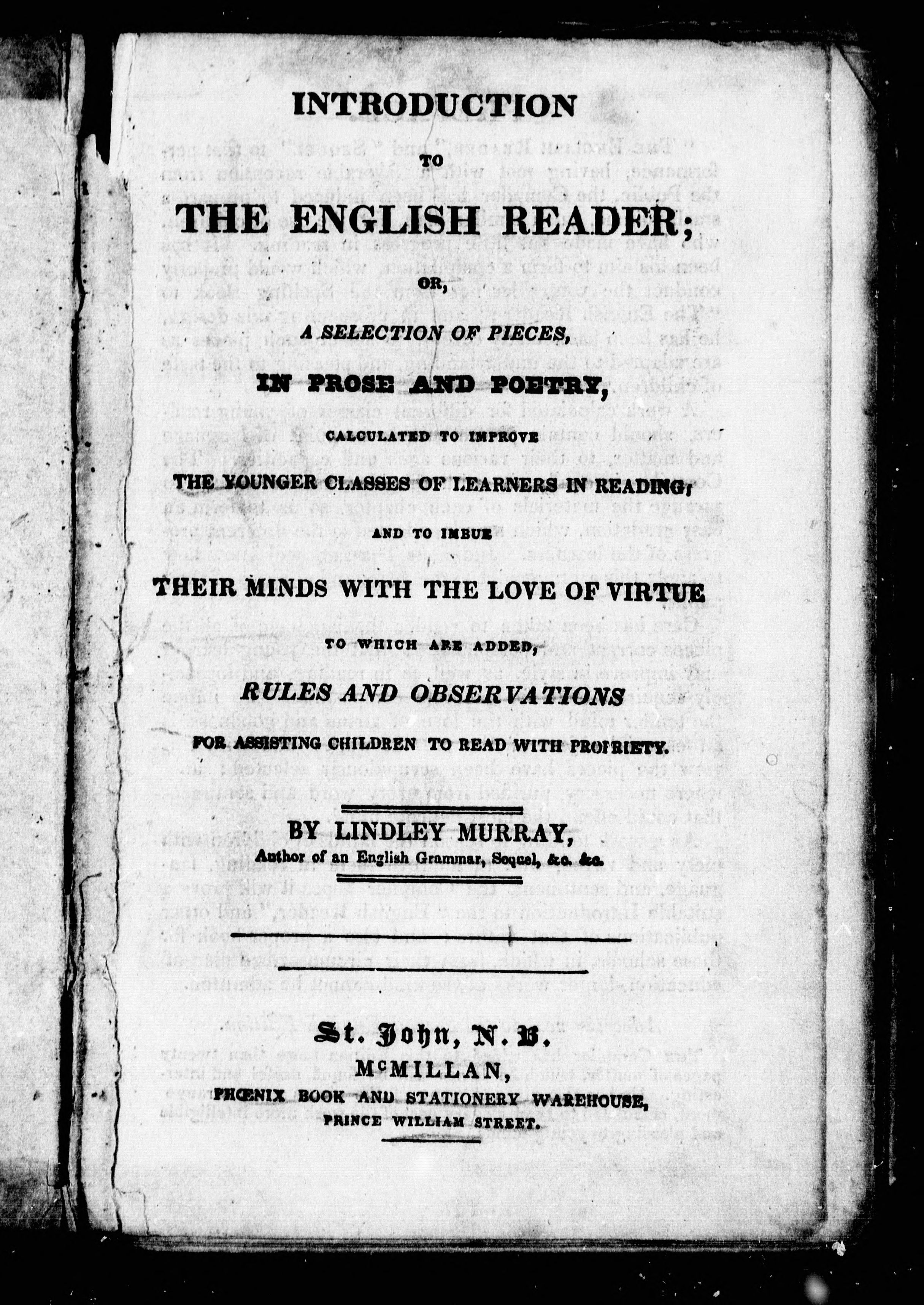 Introduction to the English reader, or, A selection of pieces in prose and poetry : calculated to improve the younger classes of learners in reading, and to imbue their minds with the love of virtue : to which are added, rules and observations for assisting children to read with propriety - Adresse bibliographique
