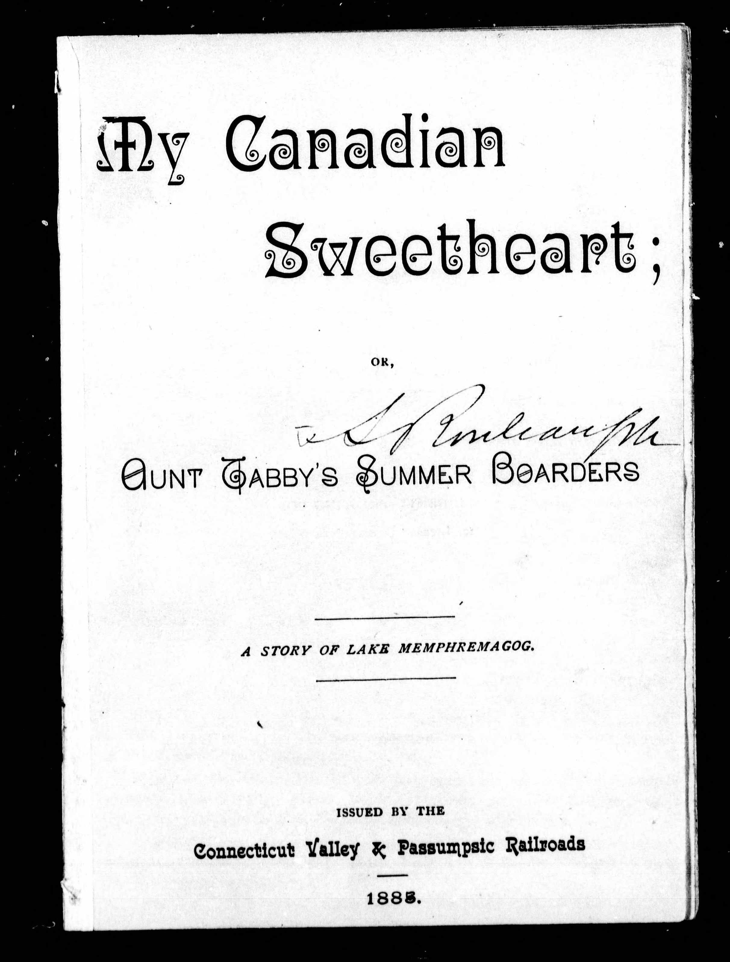 My Canadian sweetheart, or, Aunt Tabby's summer boarders : a story of Lake Memphremagog. - Adresse bibliographique