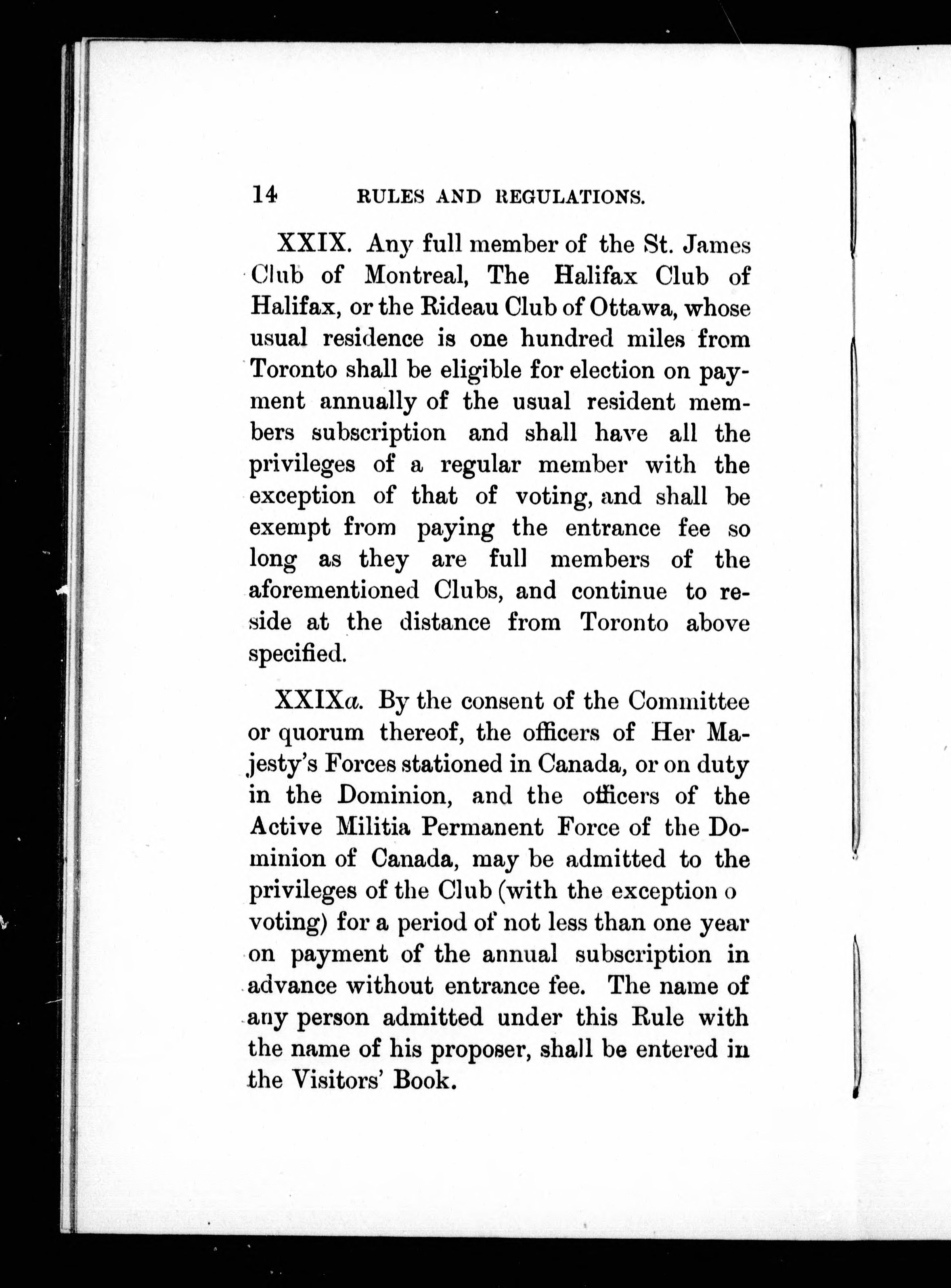 Rules and regulations of the Toronto Club : incorporated by 27 Vic. ch. 92, Can., 1864, and 41 Vic. ch. 67, Ont., 1878.
