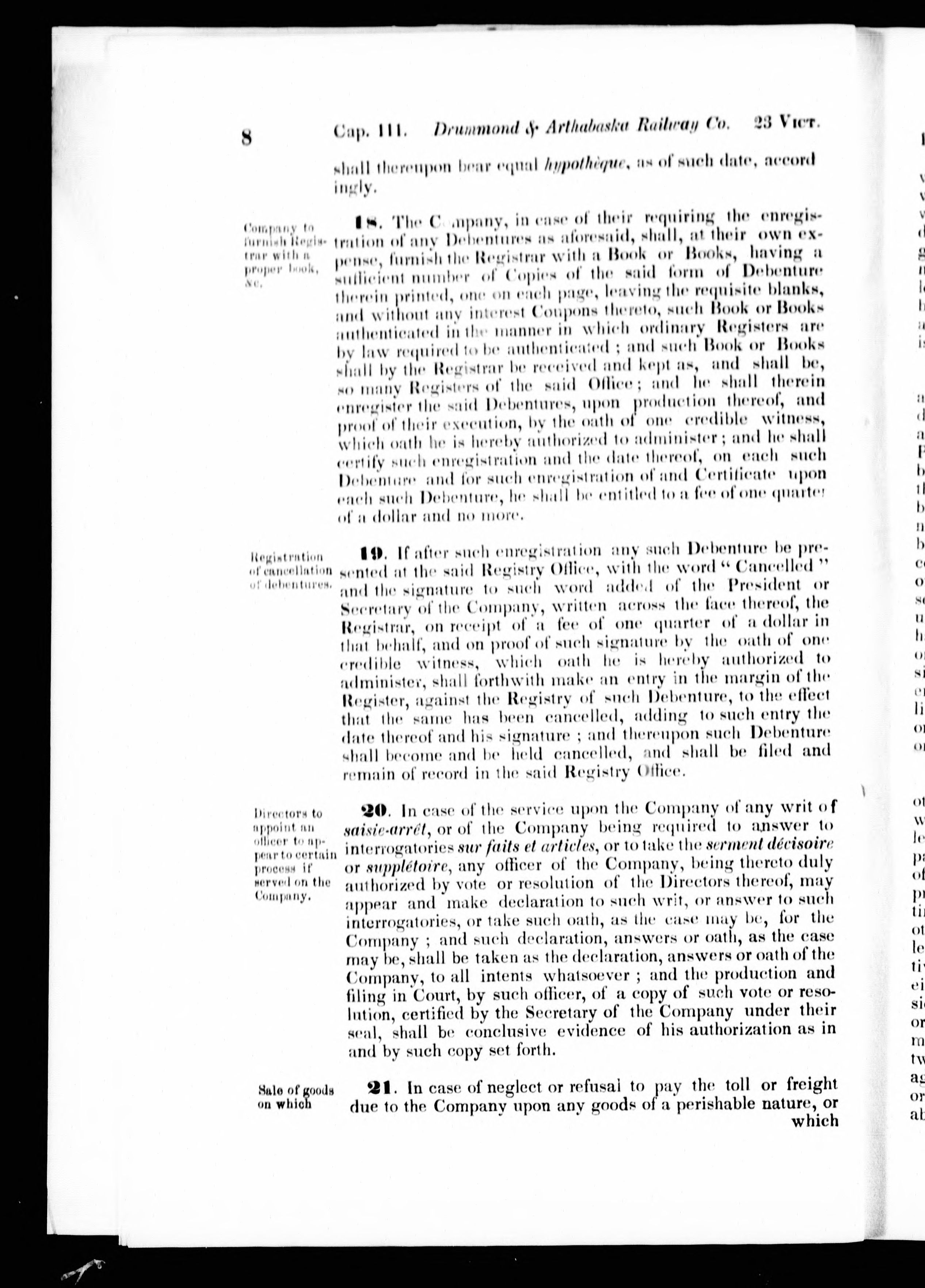 - An Act to incorporate the Drummond and Arthabaska Counties Railway Company : 23 Vict. Cap. 111.