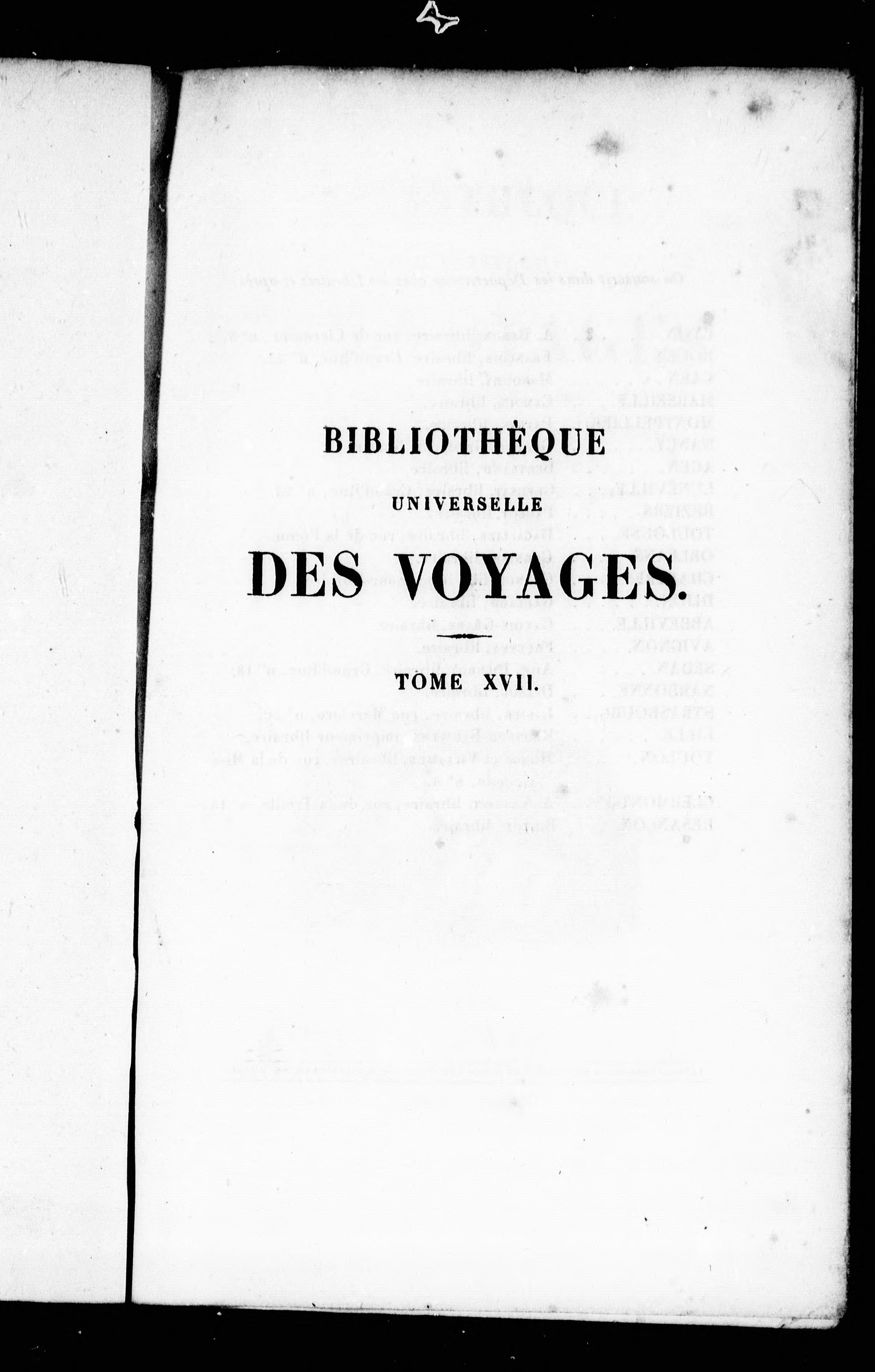Faux-titre: Bibliothèque universelle des voyages. Tome XVII.