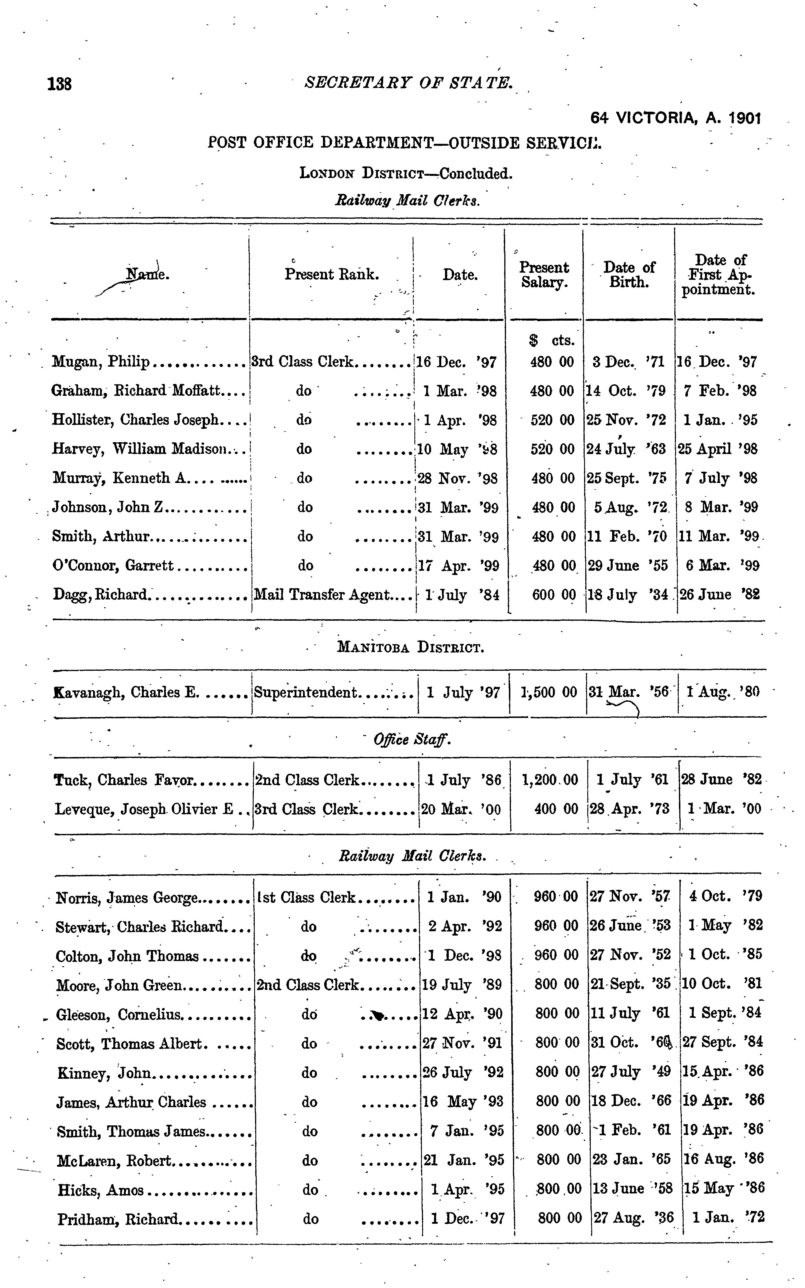 At head of title: 64 Victoria, sessional paper numbers 30, A. 1901.
