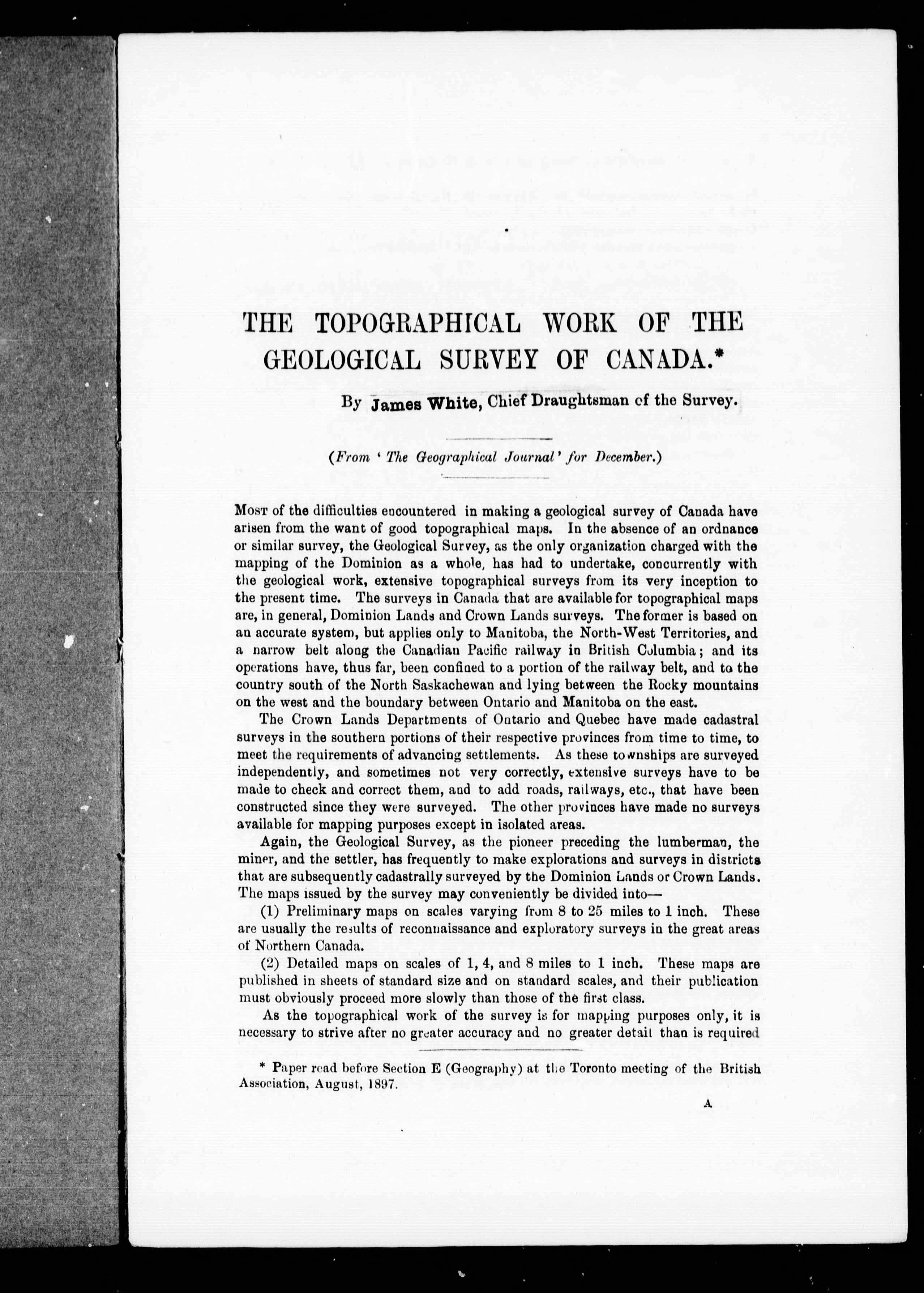 - The topographical work of the Geological Survey of Canada
