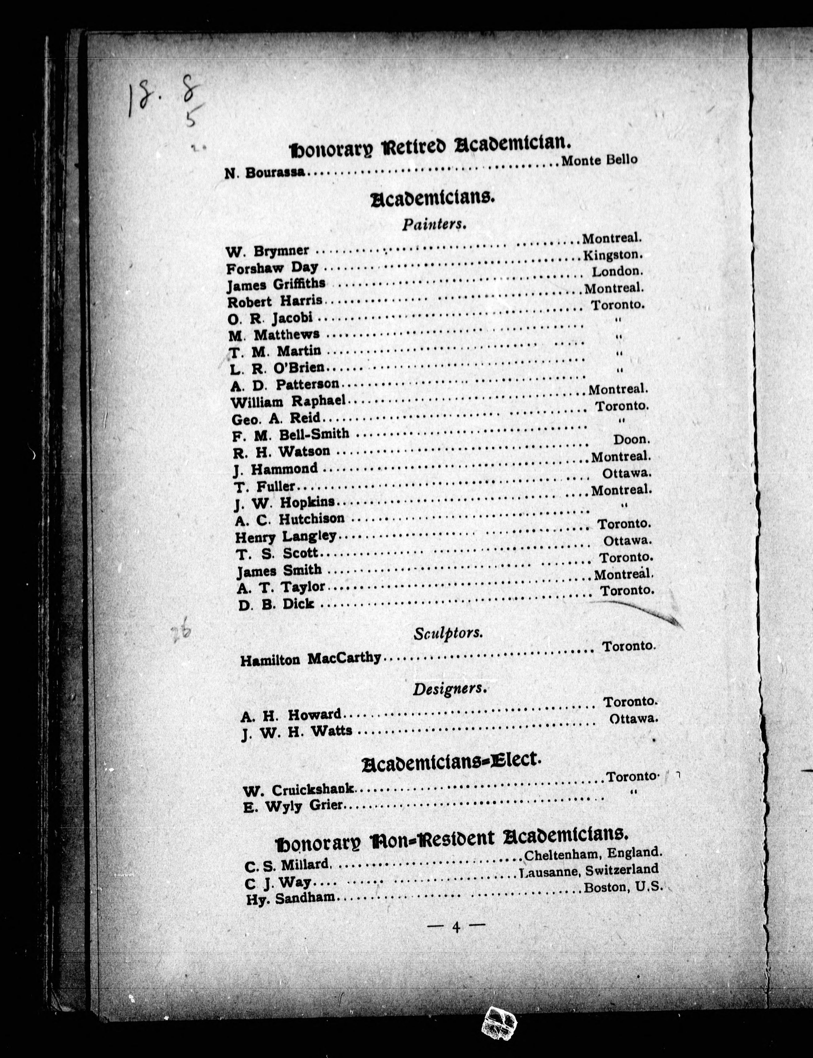 Catalogue 1895 : sixteenth annual exhibition, opened on the eighteenth day of April, in the Art Gallery, King St. West, Toronto. - Adresse bibliographique