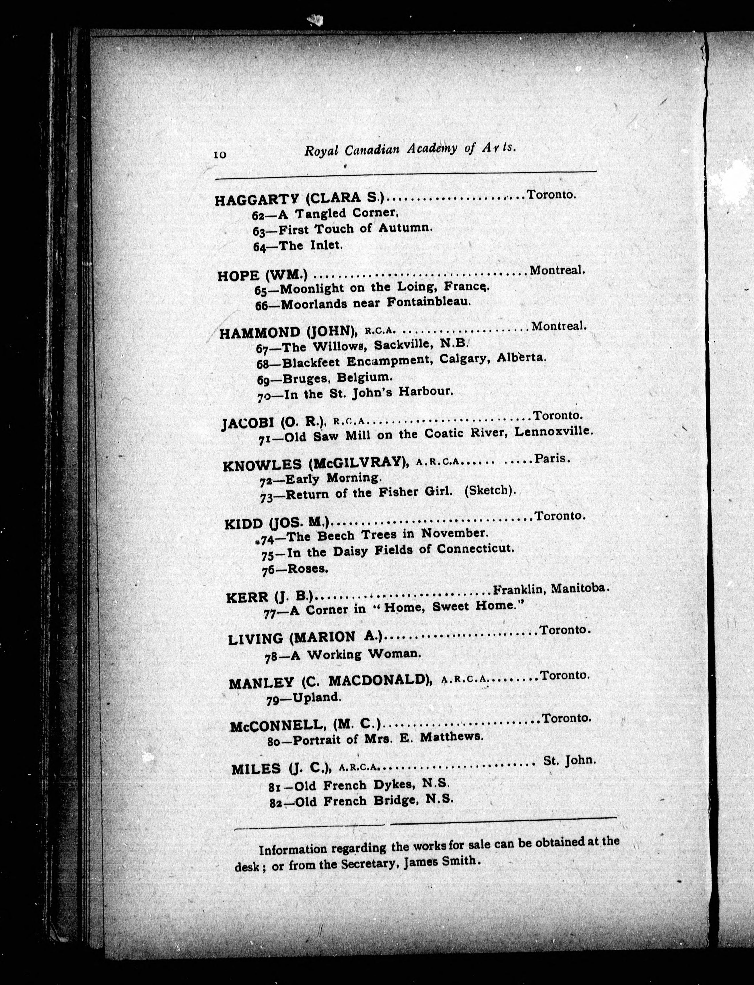 Catalogue 1895 : sixteenth annual exhibition, opened on the eighteenth day of April, in the Art Gallery, King St. West, Toronto. - Adresse bibliographique