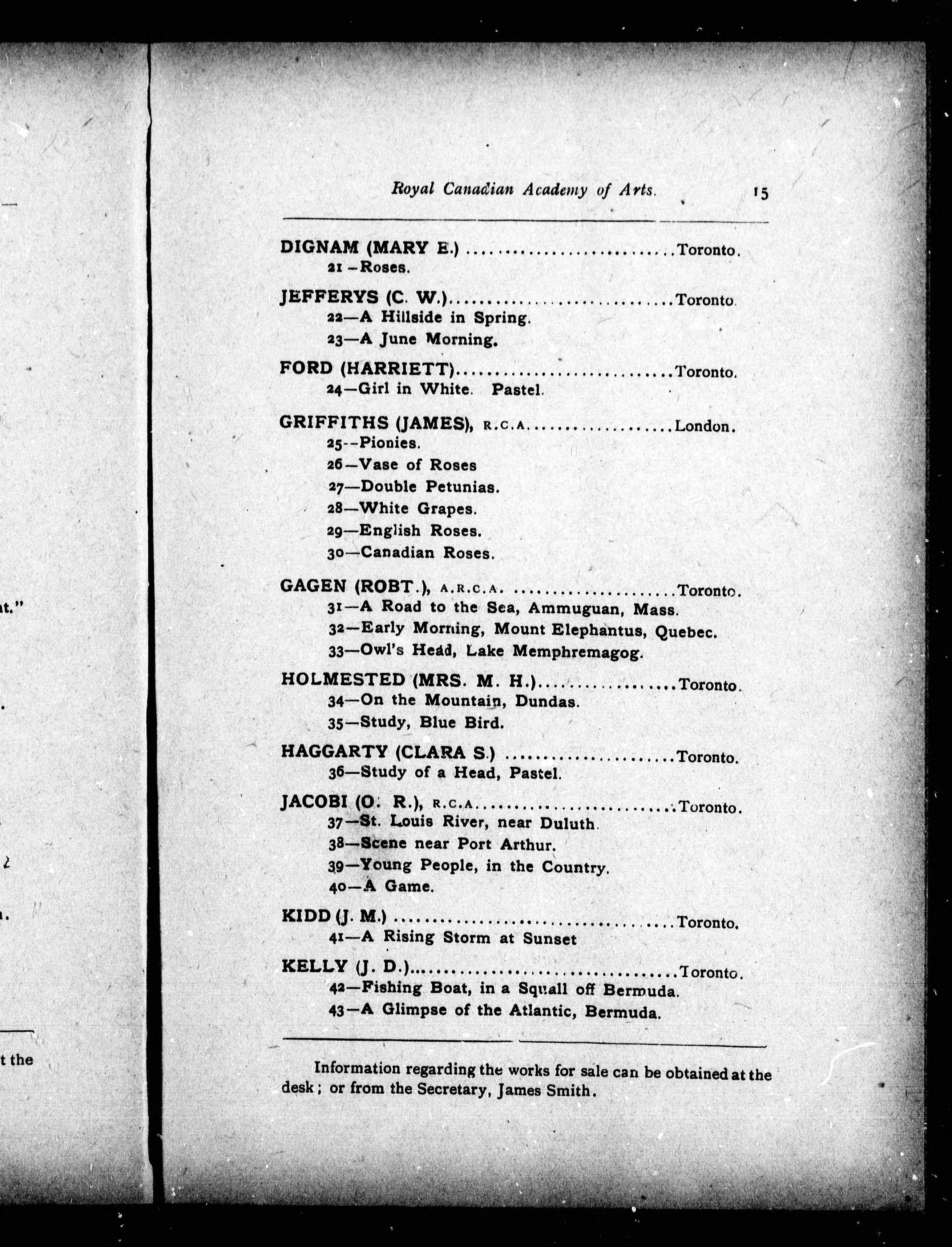 Catalogue 1895 : sixteenth annual exhibition, opened on the eighteenth day of April, in the Art Gallery, King St. West, Toronto. - Adresse bibliographique