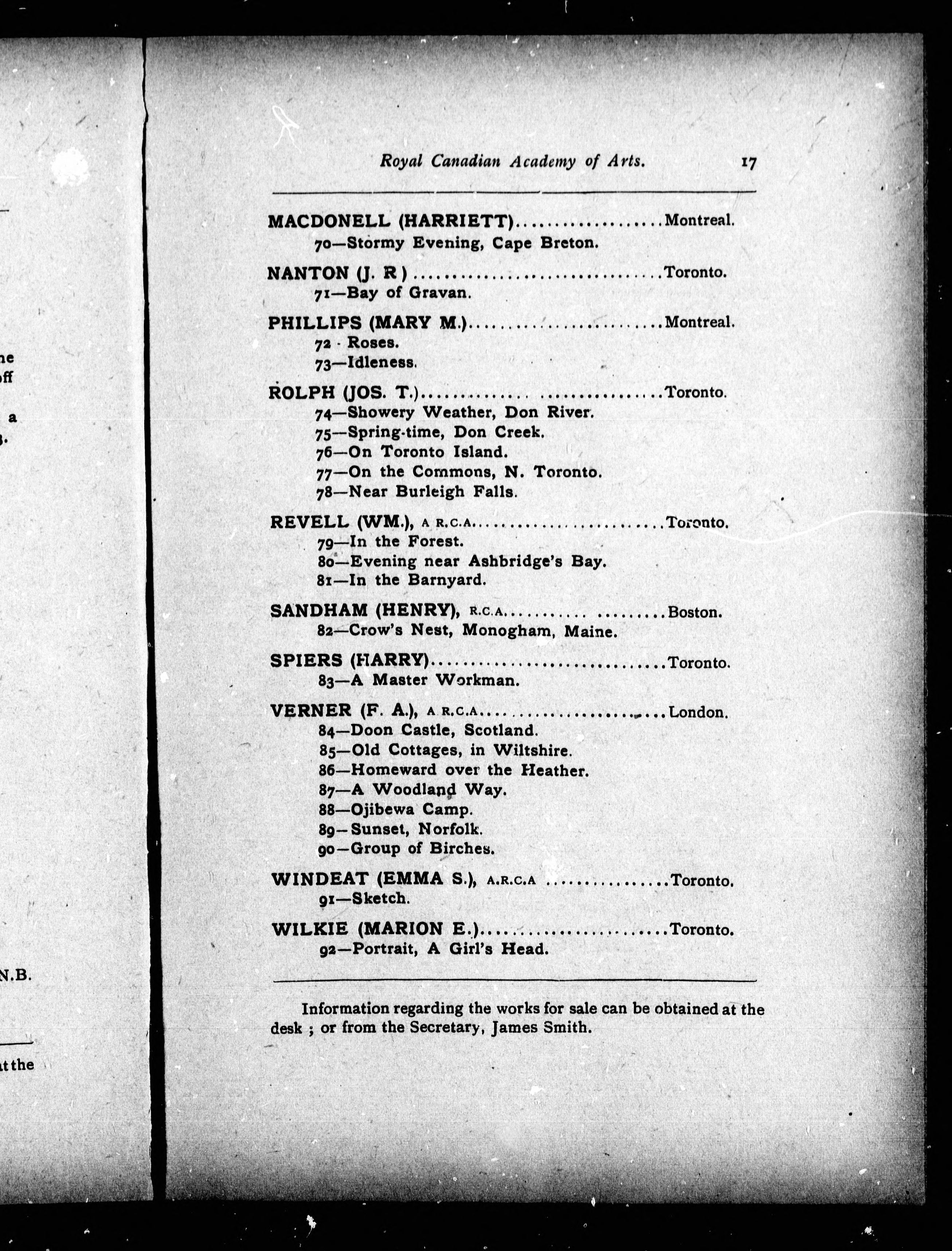 Catalogue 1895 : sixteenth annual exhibition, opened on the eighteenth day of April, in the Art Gallery, King St. West, Toronto. - Adresse bibliographique