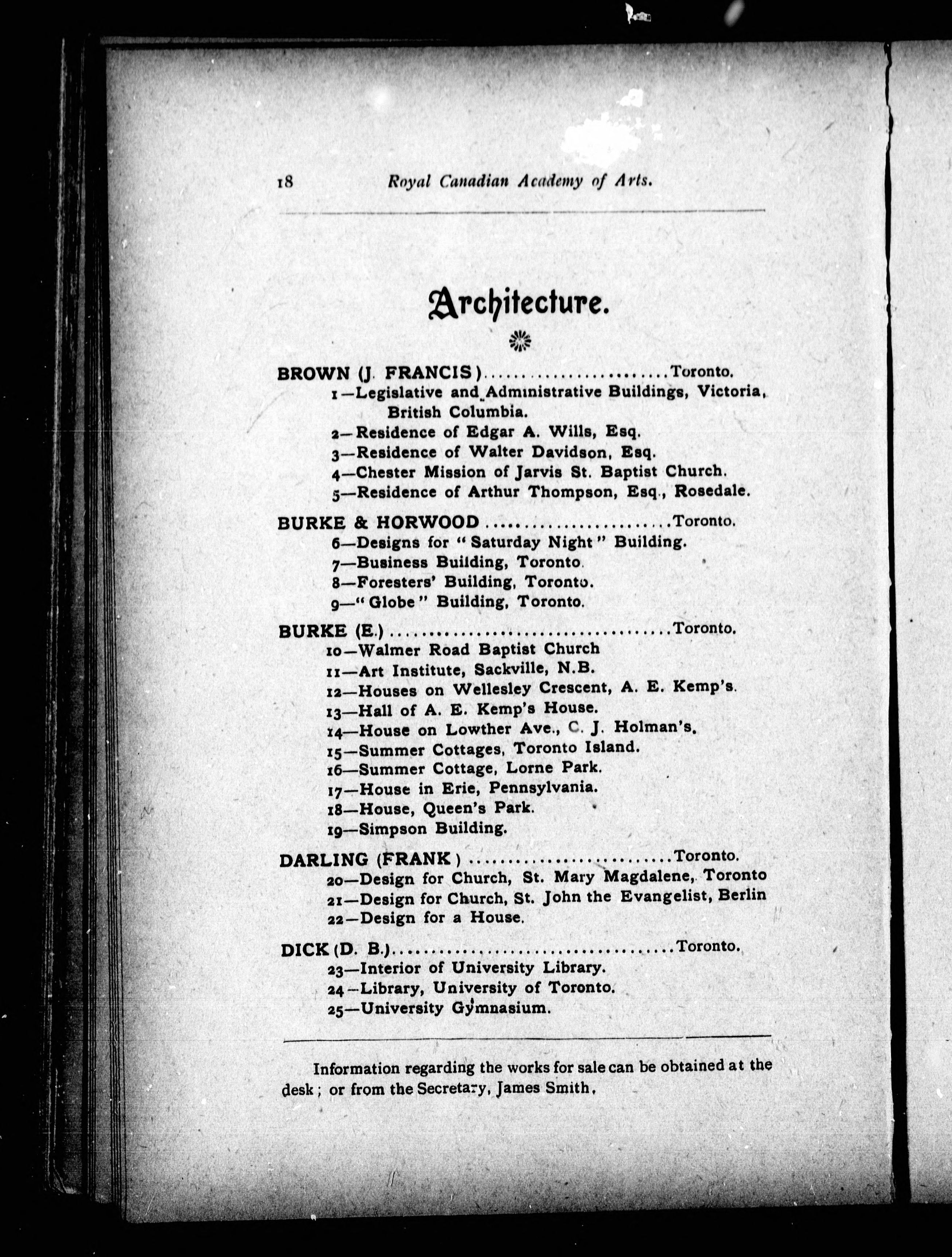 Catalogue 1895 : sixteenth annual exhibition, opened on the eighteenth day of April, in the Art Gallery, King St. West, Toronto. - Adresse bibliographique