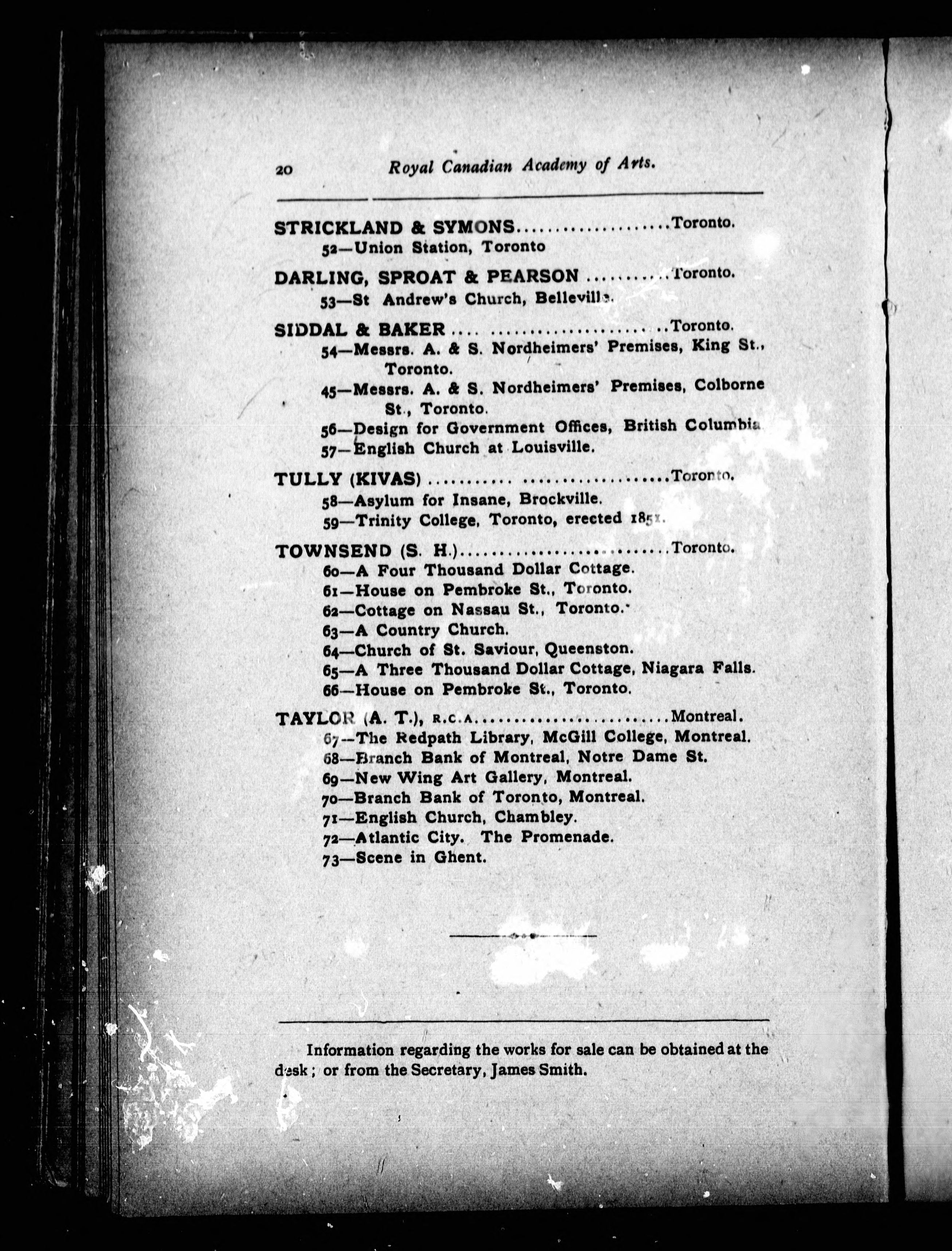 Catalogue 1895 : sixteenth annual exhibition, opened on the eighteenth day of April, in the Art Gallery, King St. West, Toronto. - Adresse bibliographique