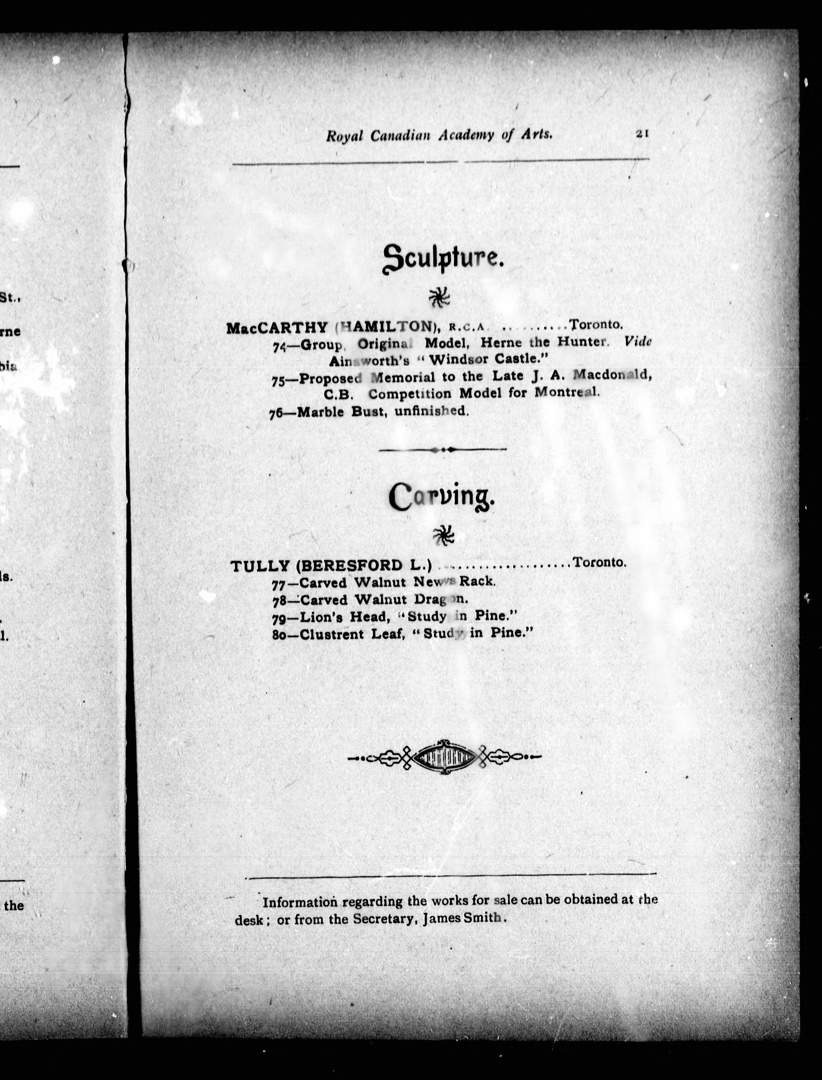 Catalogue 1895 : sixteenth annual exhibition, opened on the eighteenth day of April, in the Art Gallery, King St. West, Toronto. - Adresse bibliographique