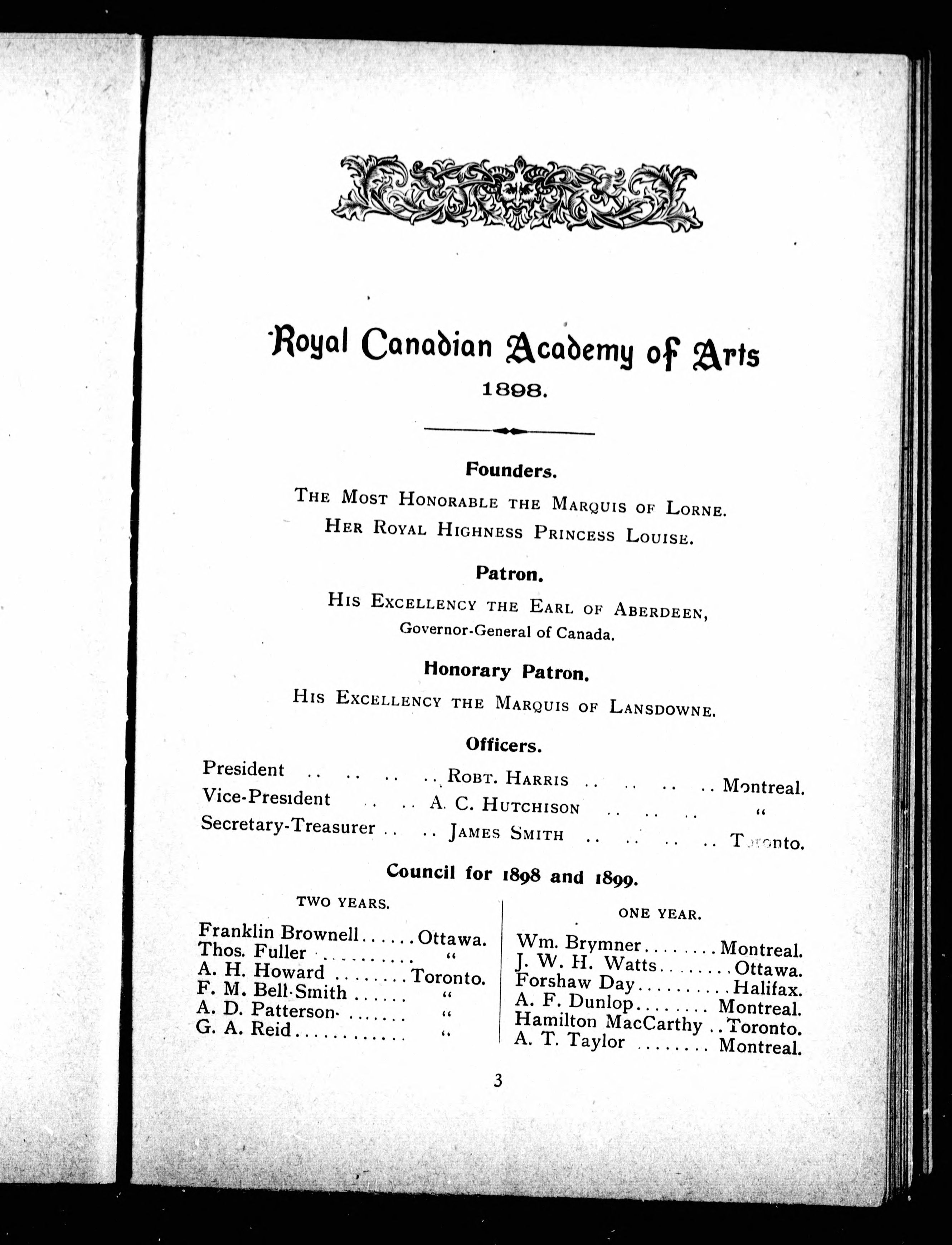 Catalogue 1898 : nineteenth annual exhibition, opened on the 3rd of March, 1898 in the O.S.A. Gallery, Toronto.