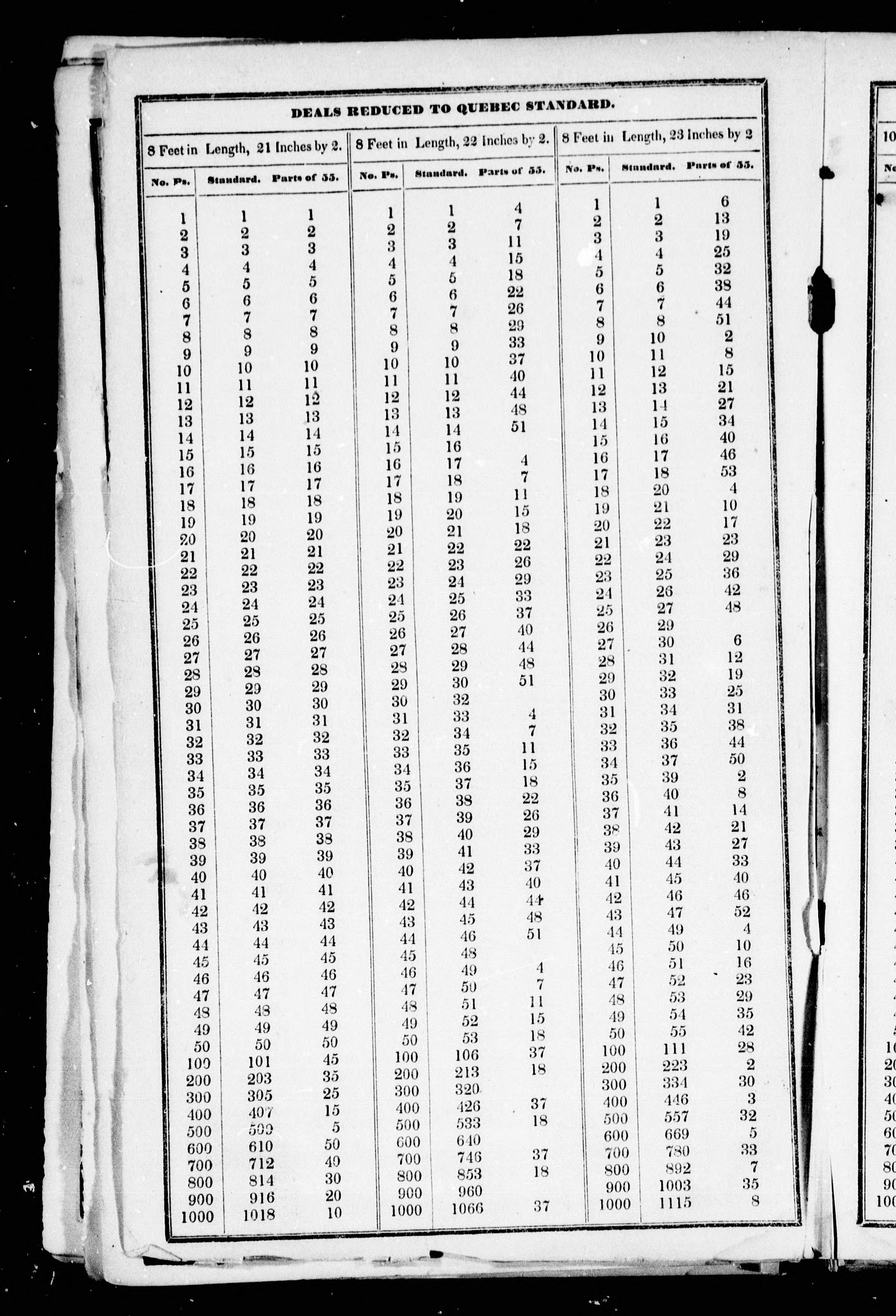 Added t.p.: Nouveaux calculs faits a l'usage des marchands, maitres de vaisseaux et mesureurs de bois : comprenant les madriers et les douves de toutes dimensions, reduites a l'étalon de Québec, avec plusieurs solutions comparatives très-utiles par rapport au bois / par F. X. Paradis