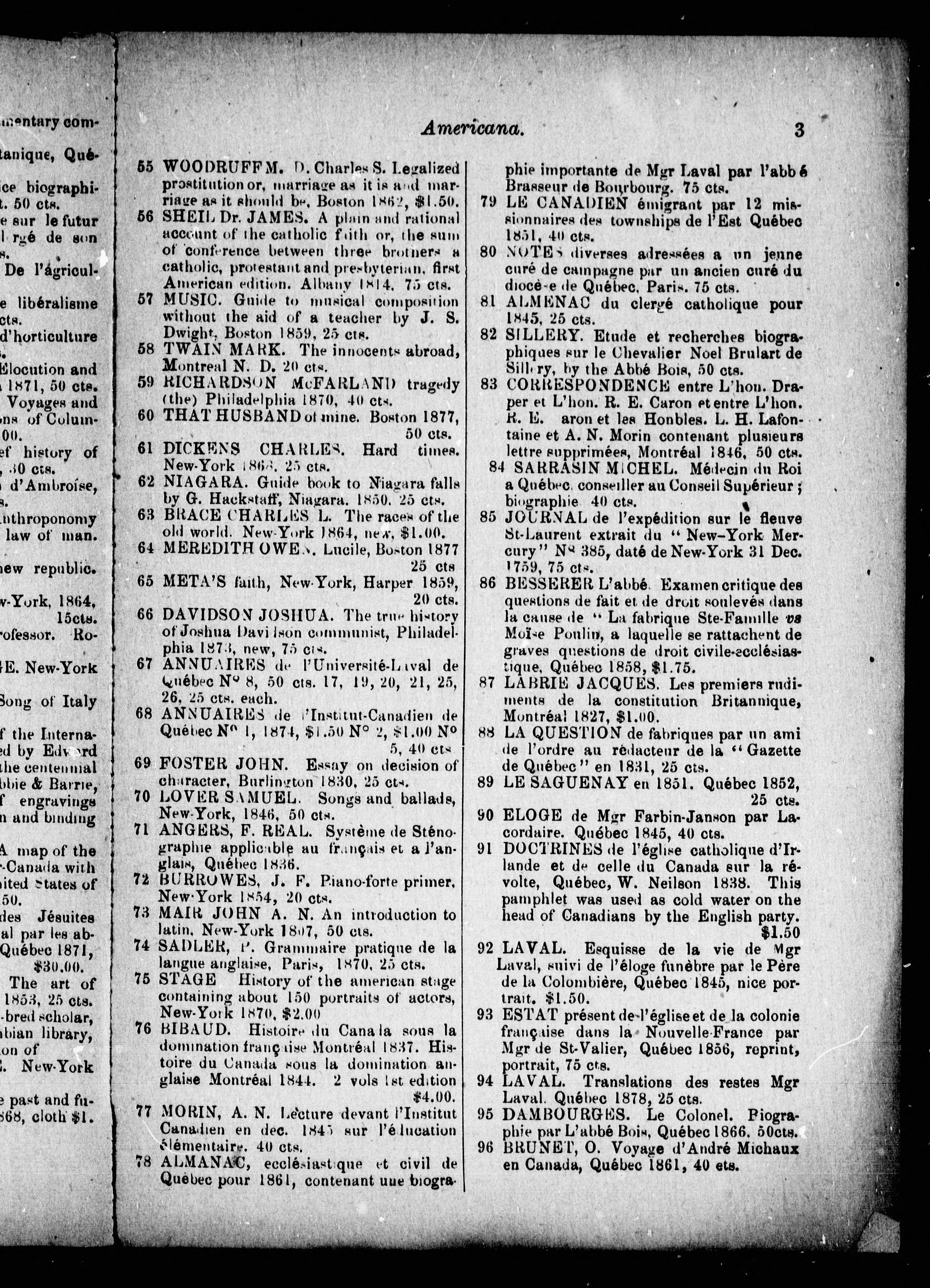Catalogue of rare old books : read attentively, English & French, Americana and miscellanies, but specially a Canadian collection.