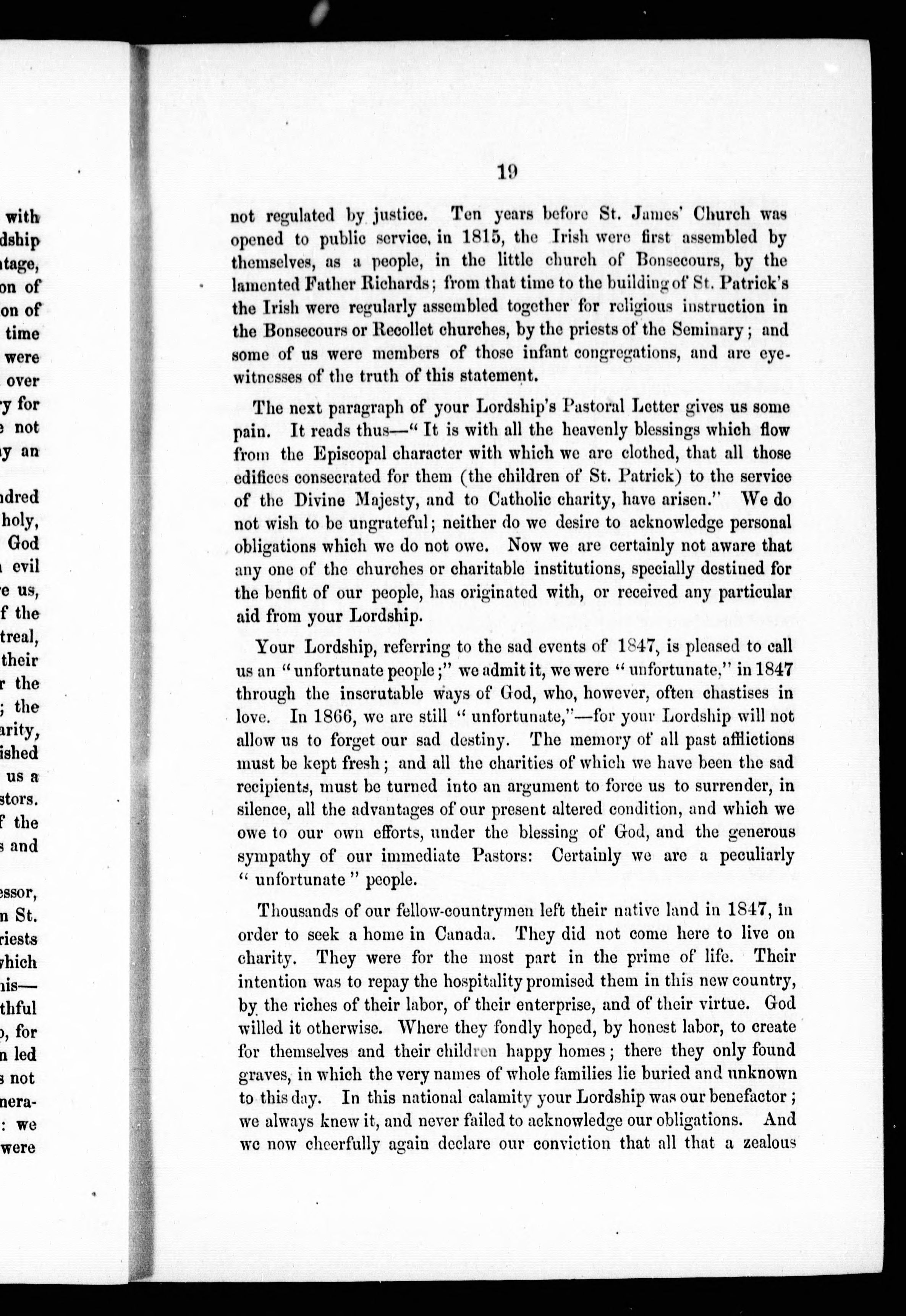 The case of St. Patrick's Congregation : as to the erection of the new canonical Parish of St. Patrick's, Montreal.