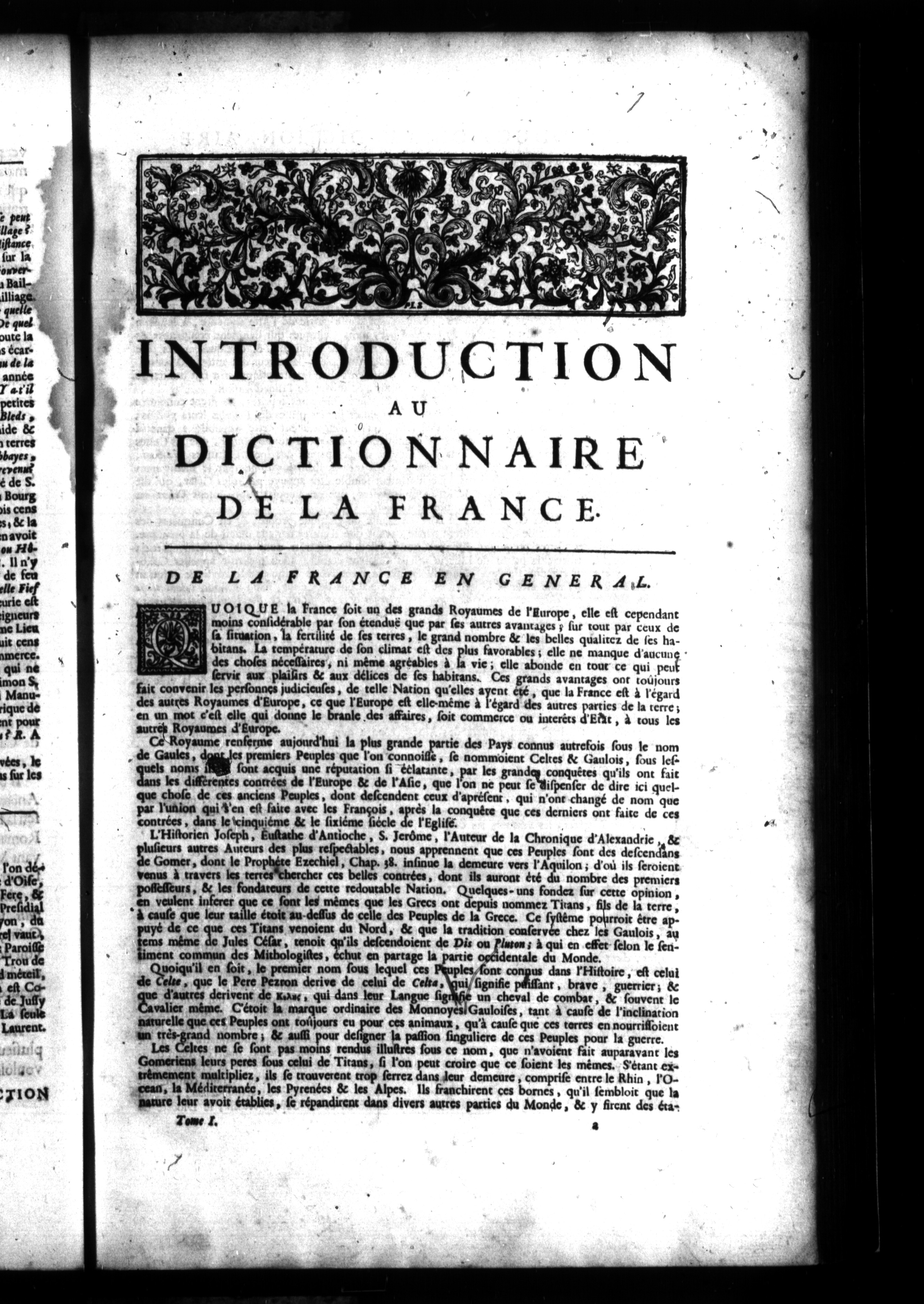Dictionnaire universel de la France ancienne et moderne, et de la Nouvelle France : traitant de tout ce qui y a rapport : [s]oit, géographie, étymologie, topogaphie, histoire ... dans lequel on trouvera les noms, la situation et la description de toutes les provinces ... et sur chaque lieu, le nombre des habitans, leurs moeurs, coutumes ...