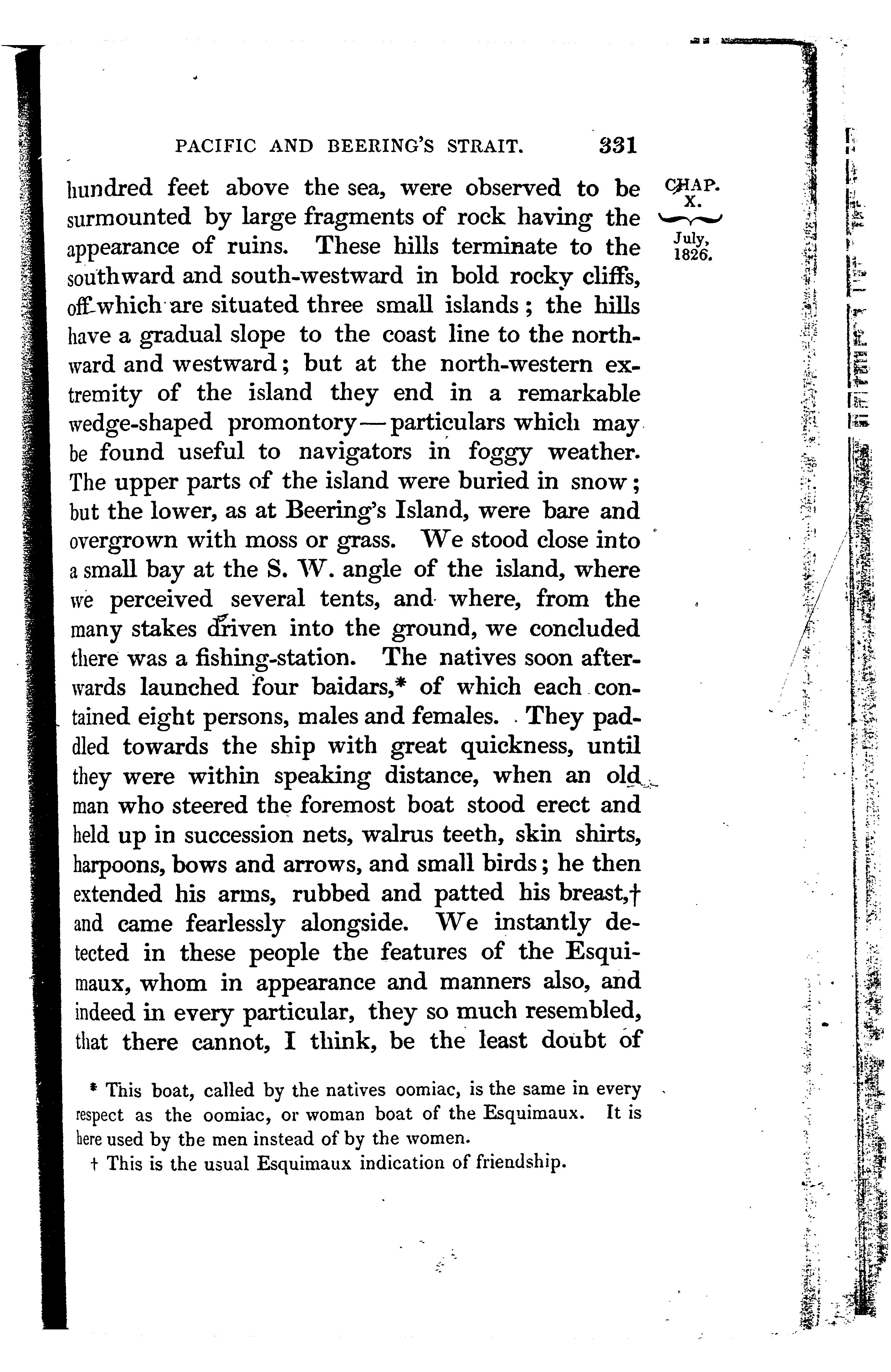 Narrative of a voyage to the Pacific and Beering's Strait, to co-operate with the polar expeditions : performed in His Majesty's ship Blossom, under the command of Captain F.W. Beechey, R. N., F.R.S. &c. in the years 1825, 26, 27, 28.