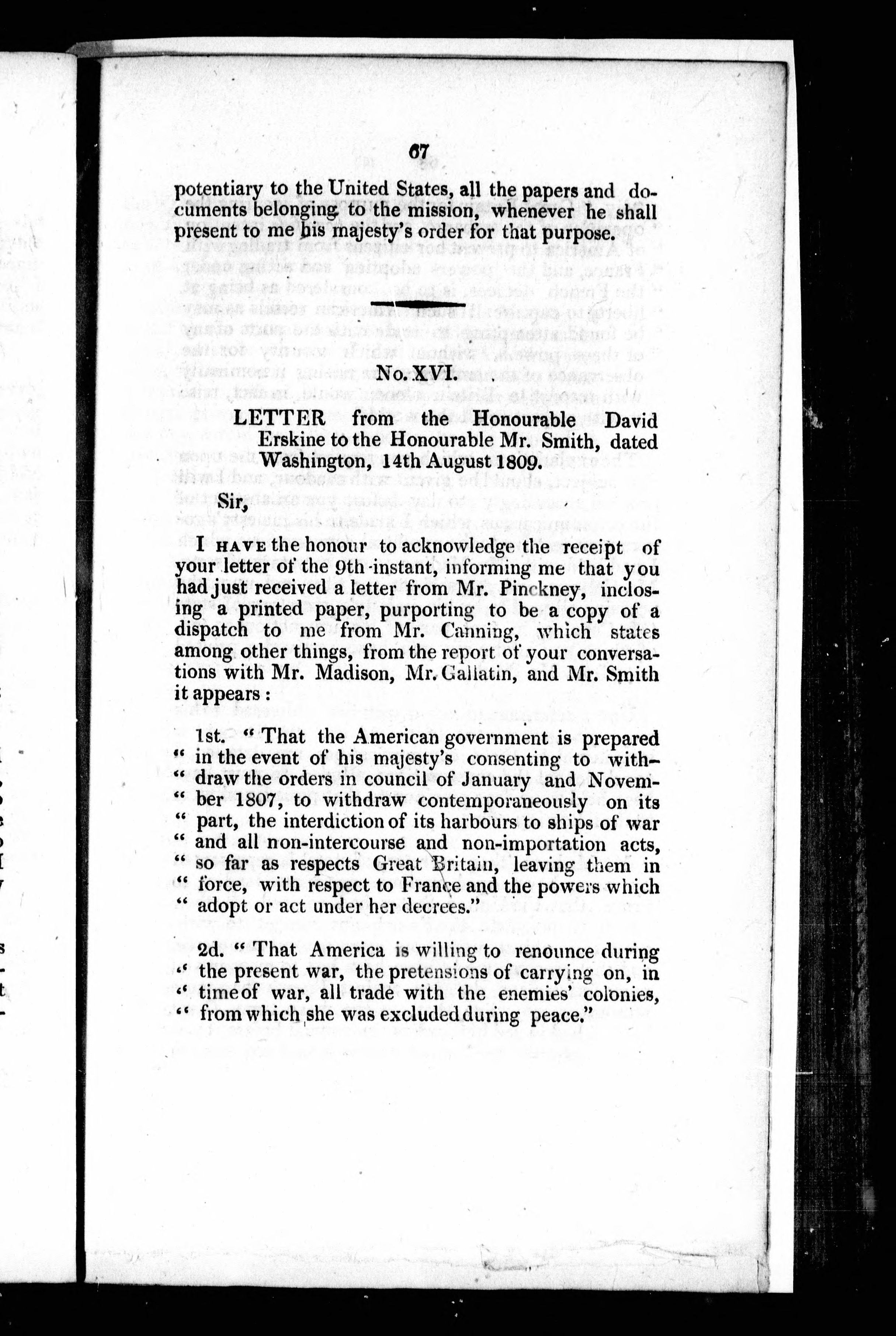 Correspondence between Mr. Secretary Canning and the Hon. D. Erskine : as printed and laid before the House of Lords.