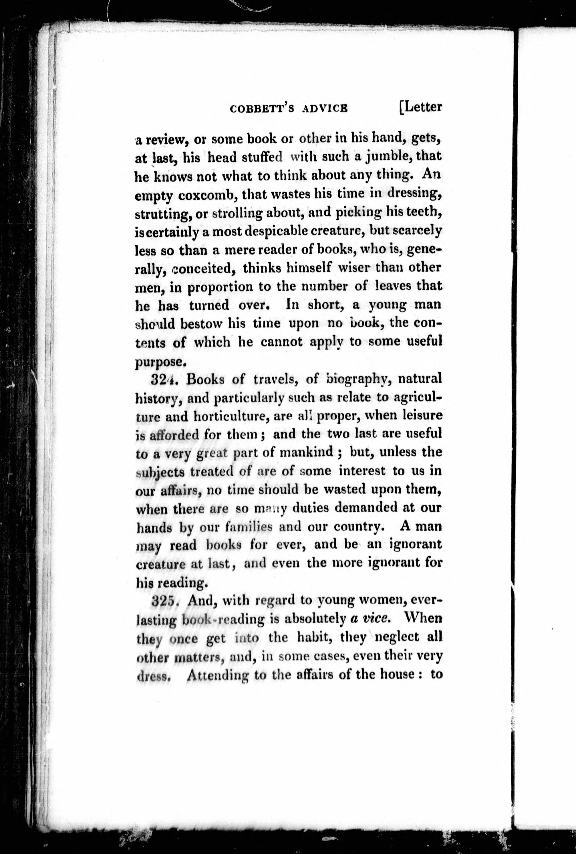 Advice to young men, and (incidentally) to young women, in the middle and higher ranks of life : in a series of letters addressed to a youth, a bachelor, a lover, a husband, a father, a citizen, or a subject