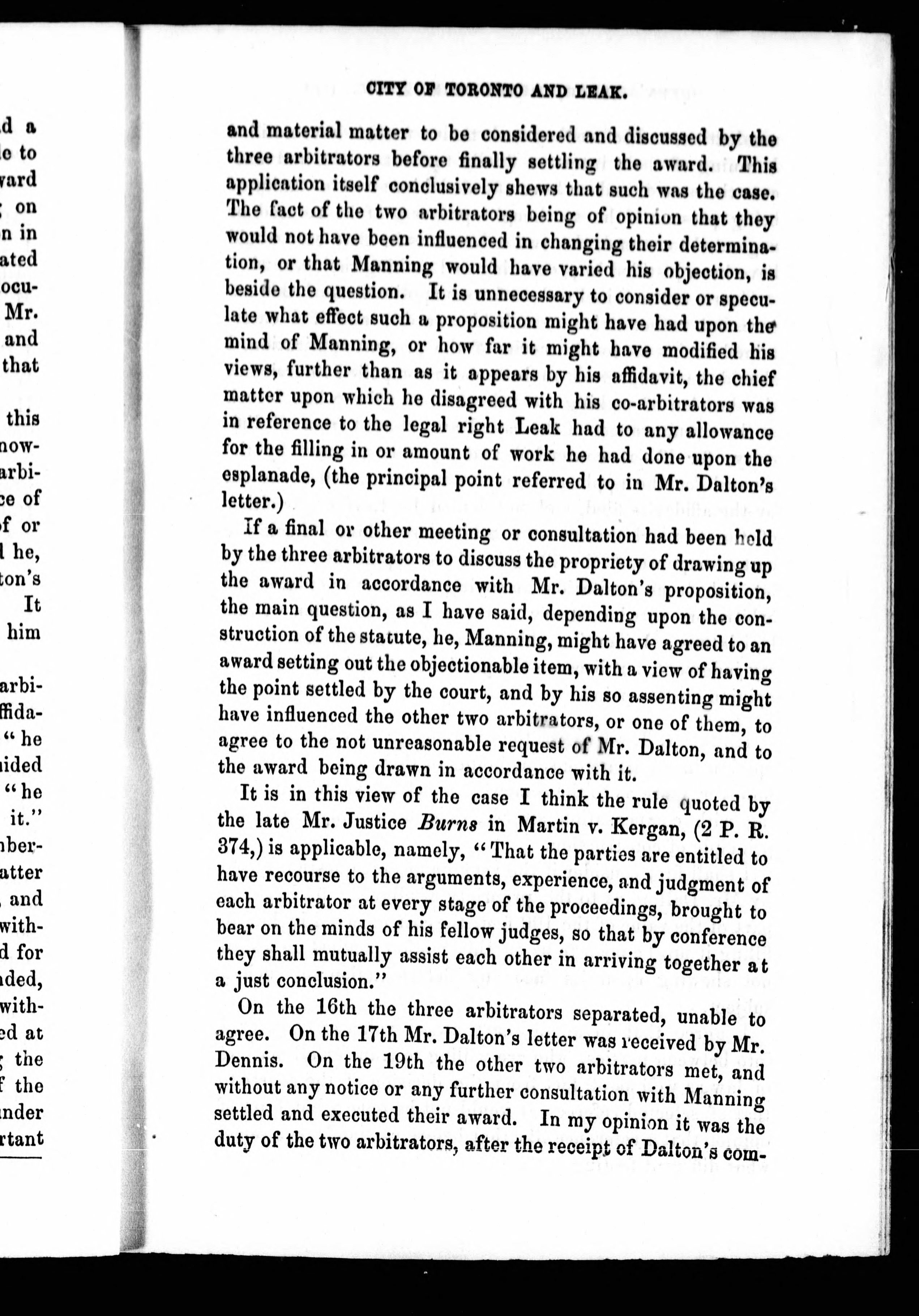 - In the matter of the arbitration between the corporation of the city of Toronto and John Leak.