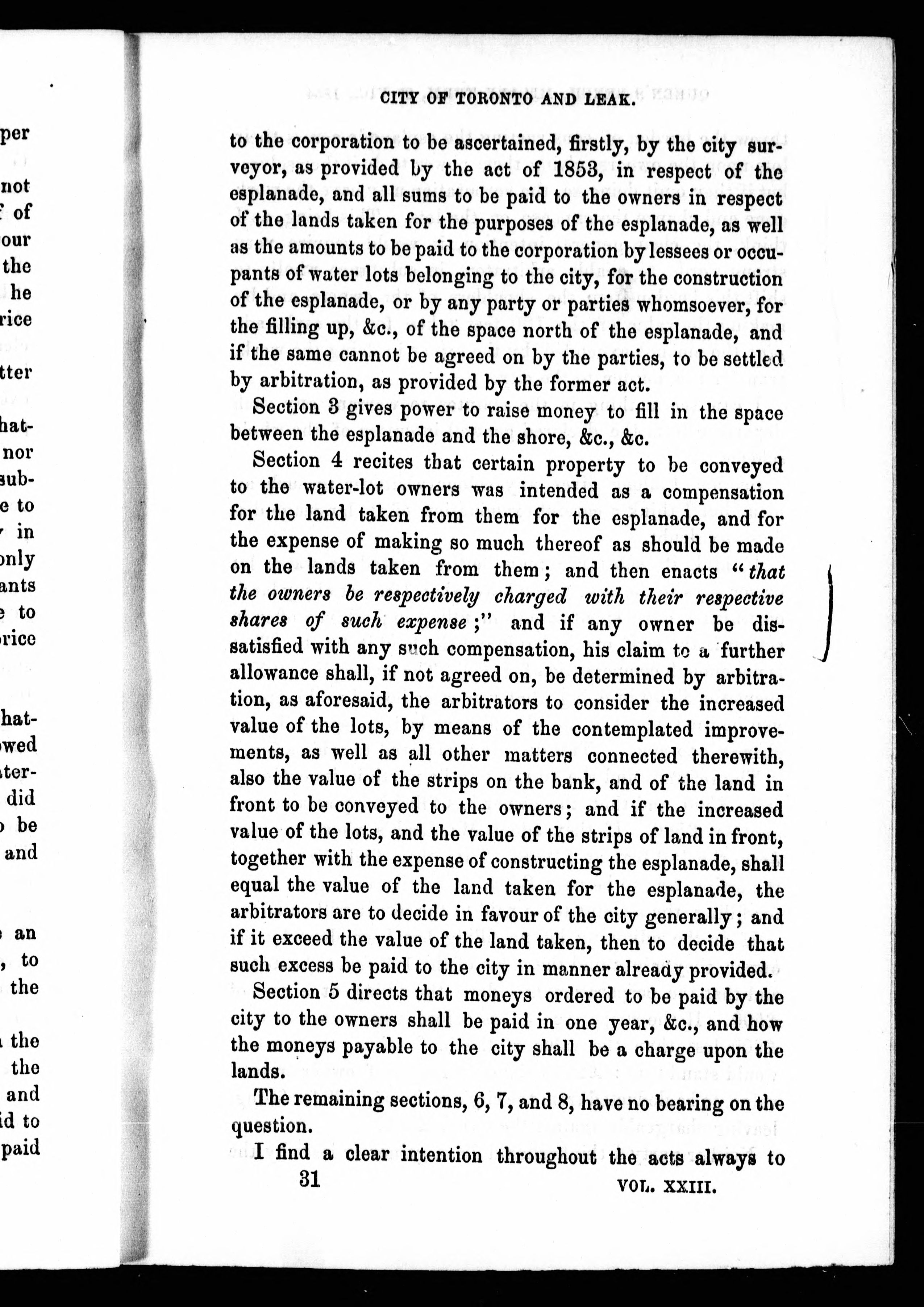 - In the matter of the arbitration between the corporation of the city of Toronto and John Leak.