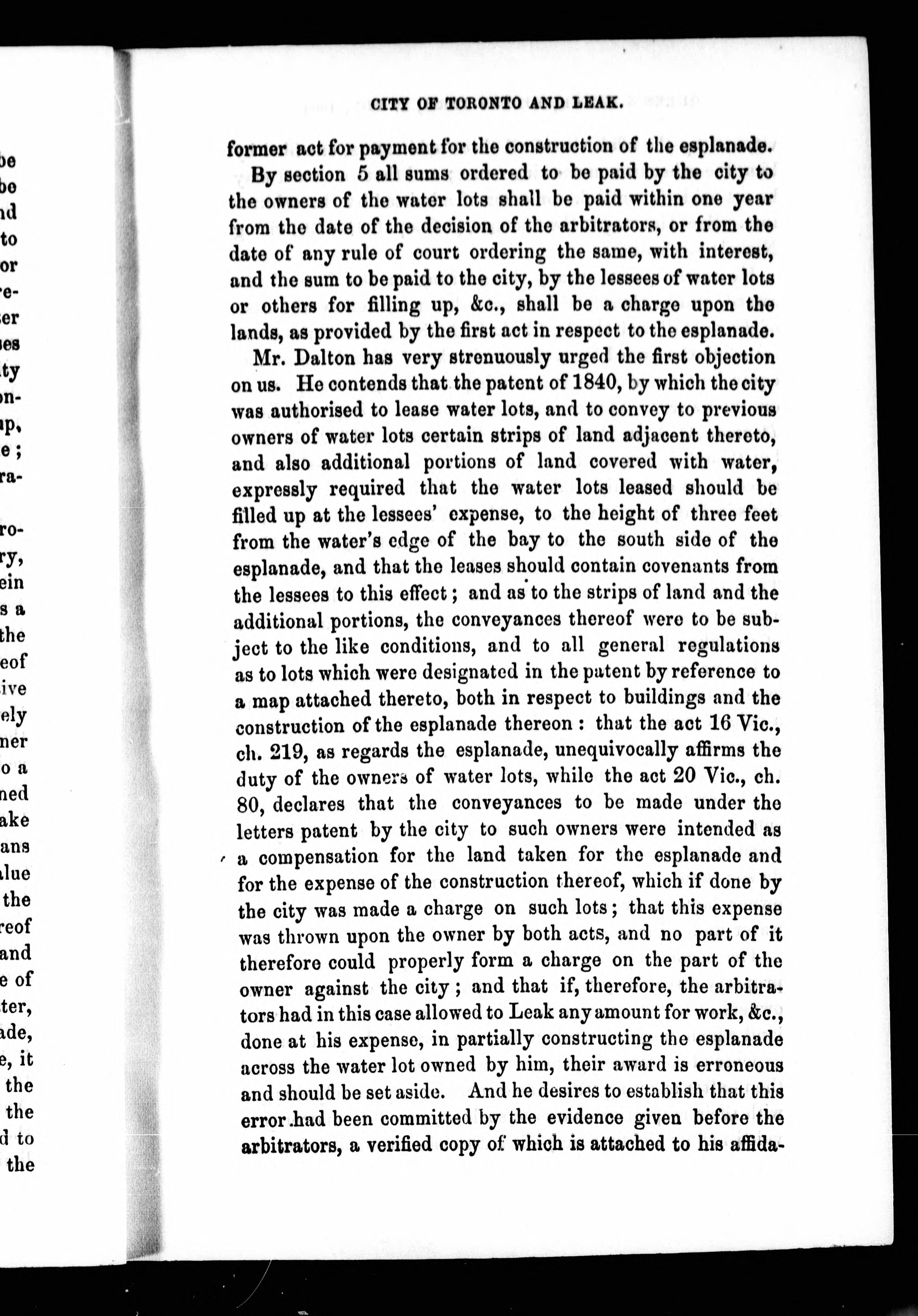 In the matter of the arbitration between the corporation of the city of Toronto and John Leak.
