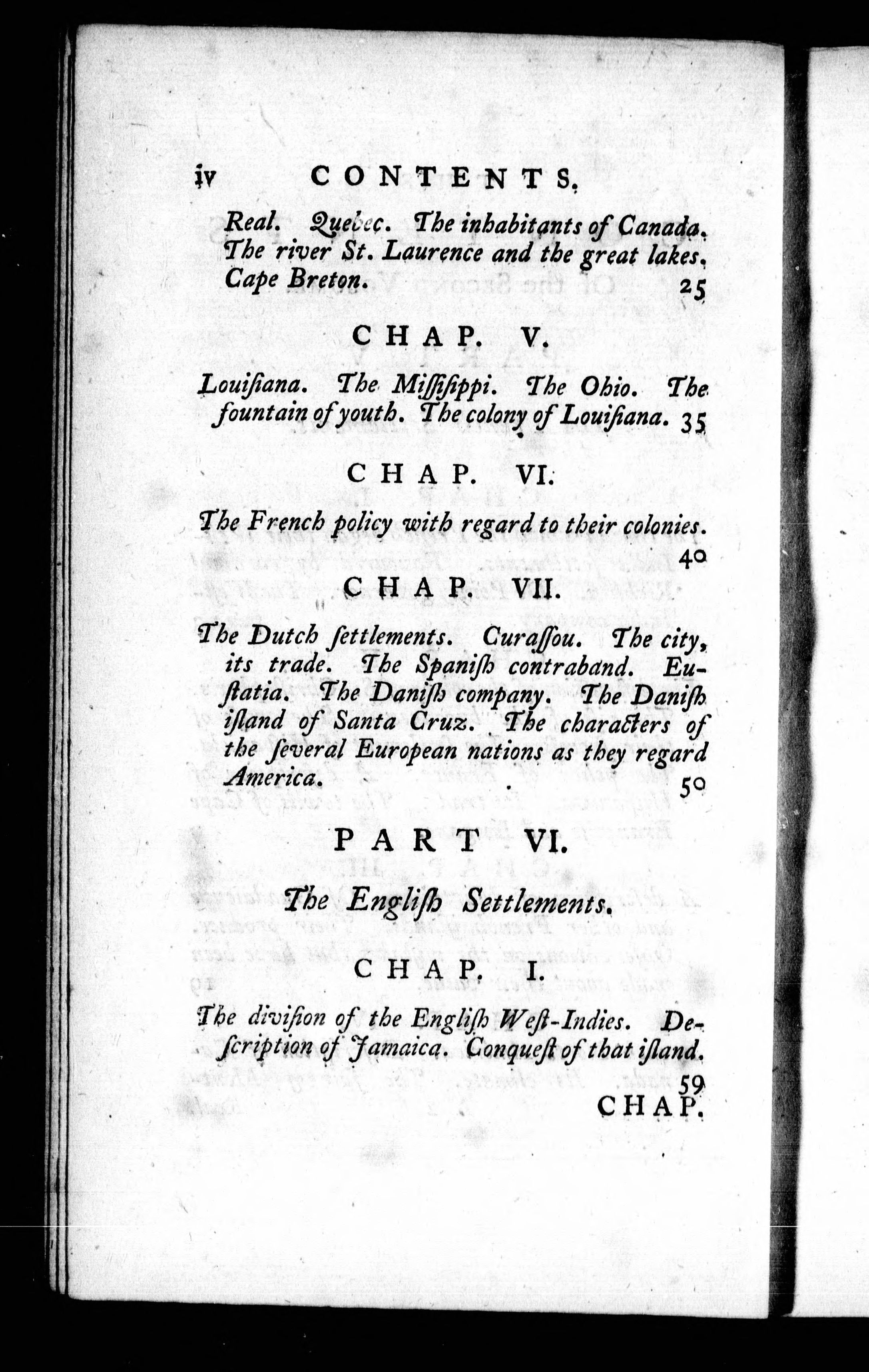 "Each part contains an accurate description of the settlements in it, their extent, climate, productions, trade, genius and disposition of their inhabitants : the interests of the several powers of Europe with respect to those settlements, and their political and commercial views with regard to each other."