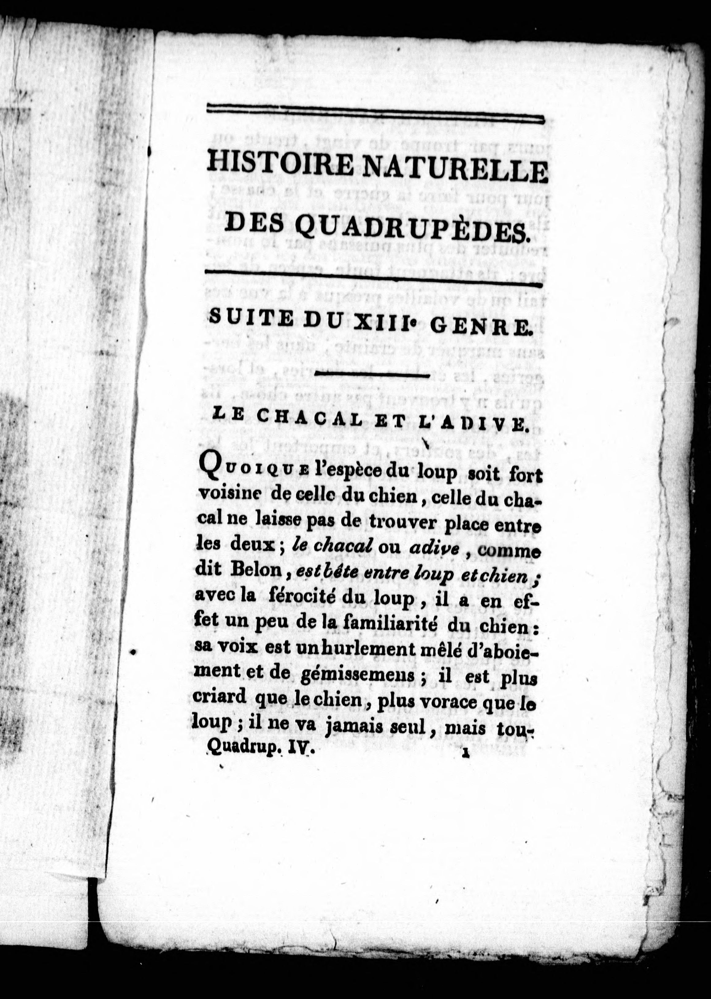 Faux-titre: Histoire naturelle de Buffon. Quadrupedes. Tome IV.