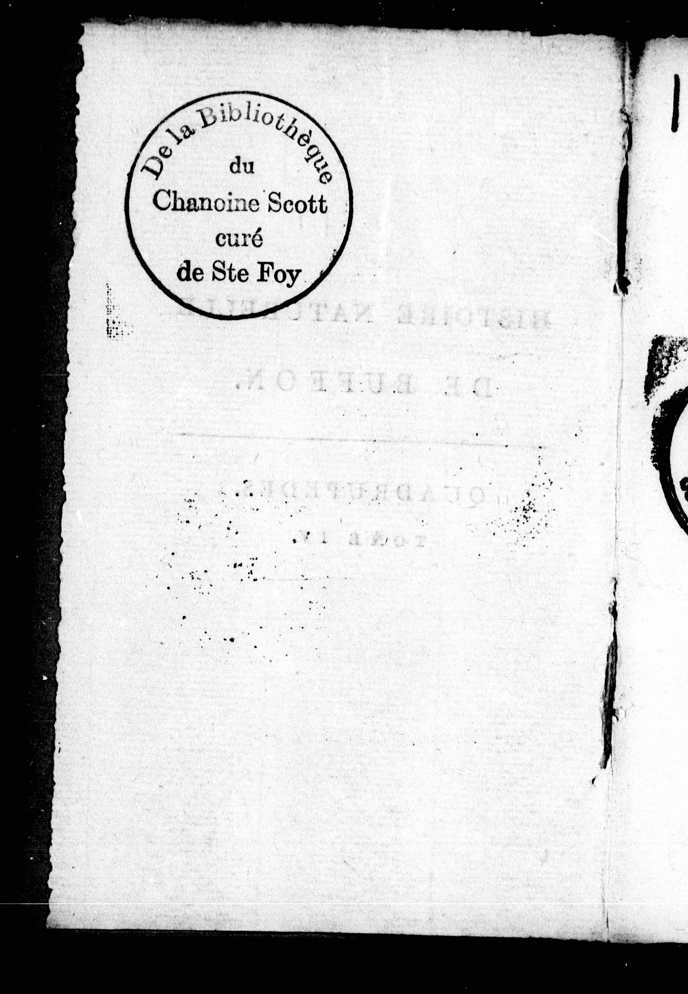 Faux-titre: Histoire naturelle de Buffon. Quadrupedes. Tome IV.