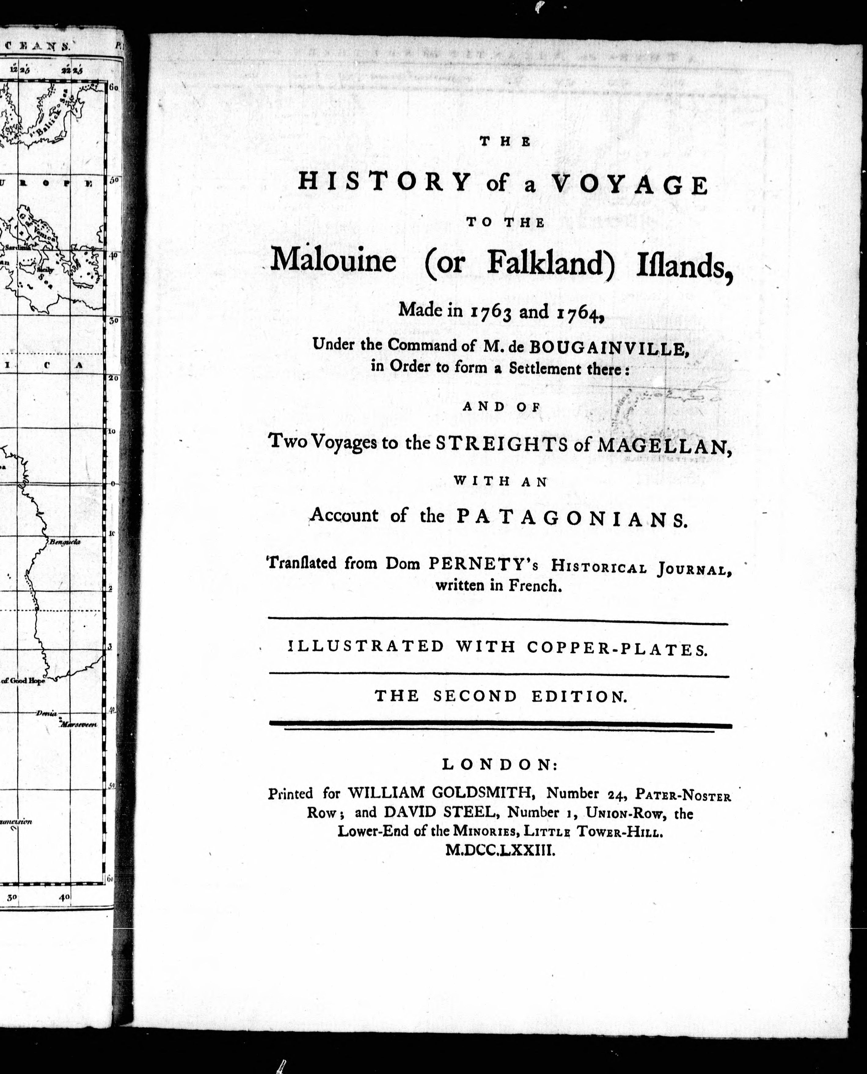 The history of a voyage to the Malouine (or Falkland) Islands : made in 1763 and 1764 under the command of M. de Bougainville, in order to form a settlement there : and of two voyages to the Streights of Magellan, with an account of the Patagonians