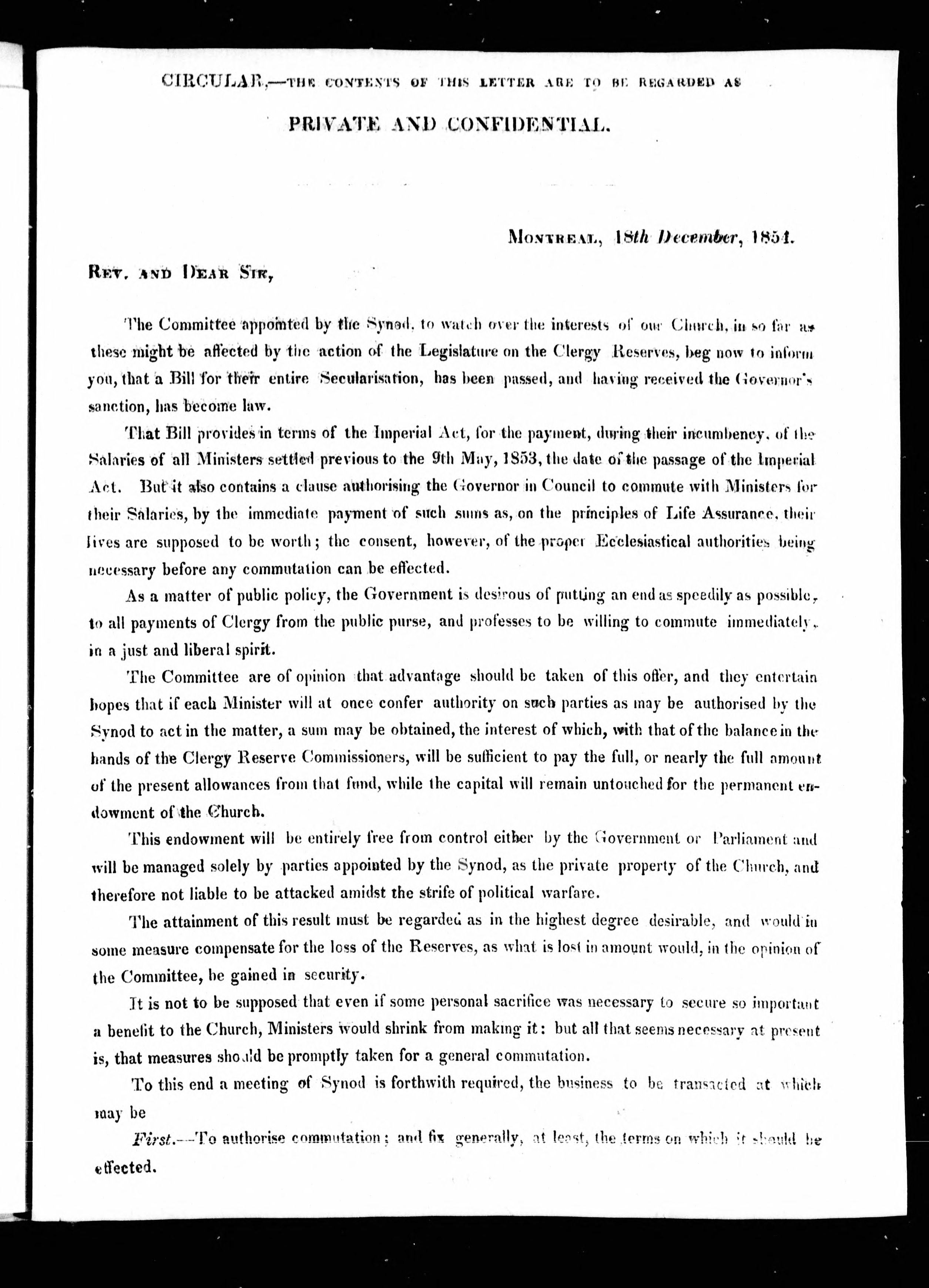 Circular : the contents of this letter are to be regarded as private and confidential. - Adresse bibliographique