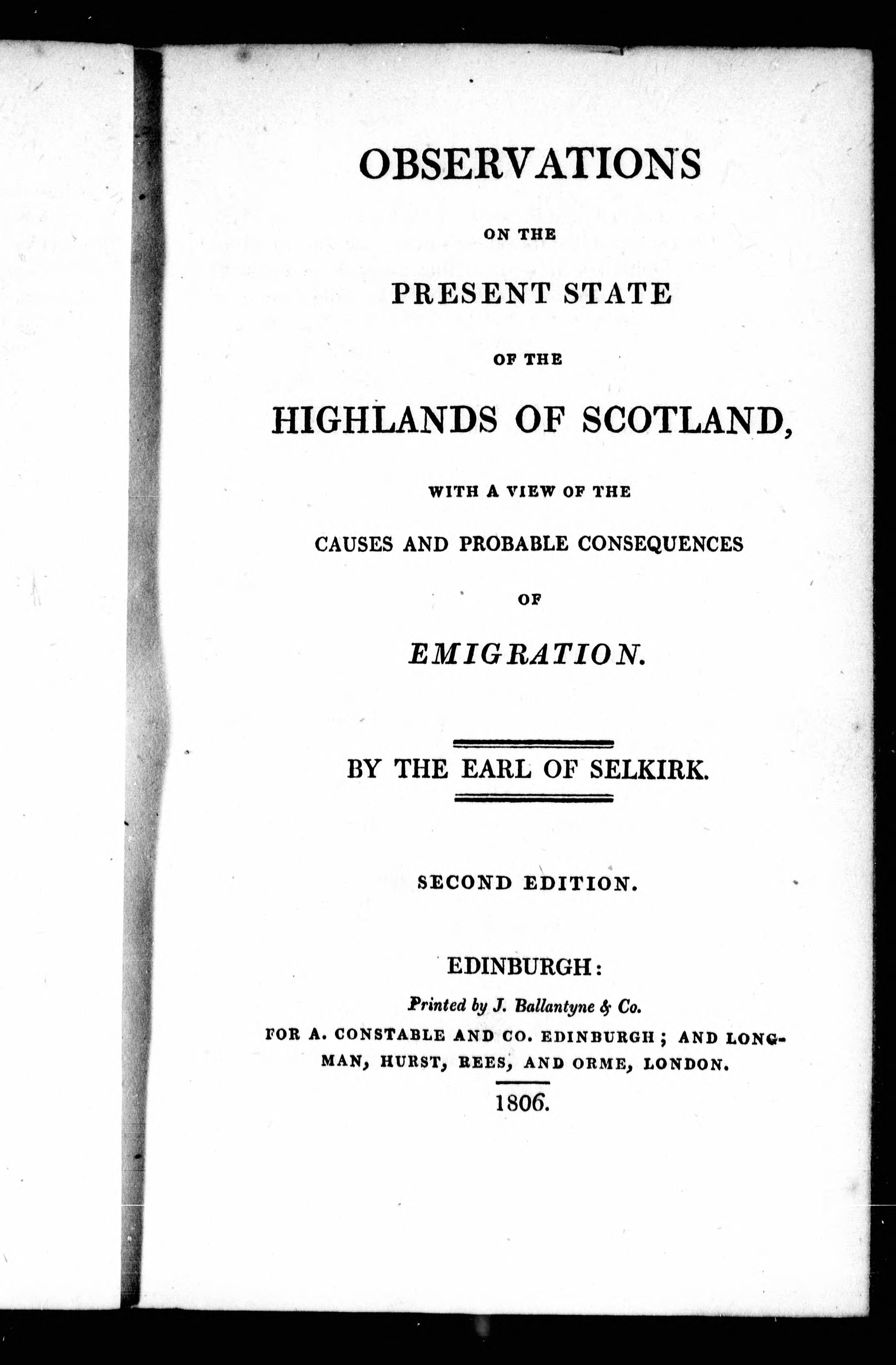 Selkirk, Thomas Douglas, Earl of, 1771-1820., author