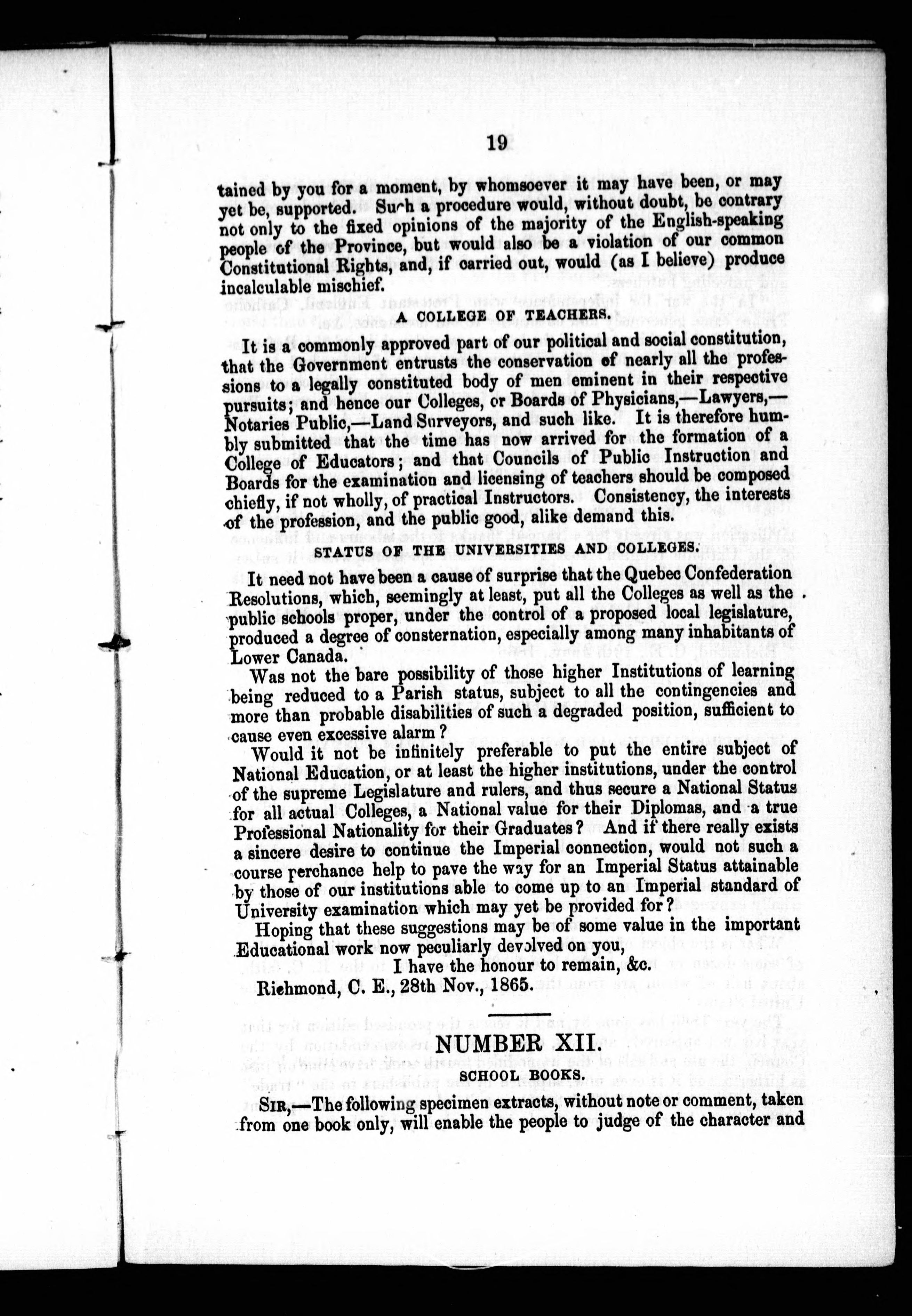 - Letters on public education in Lower Canada