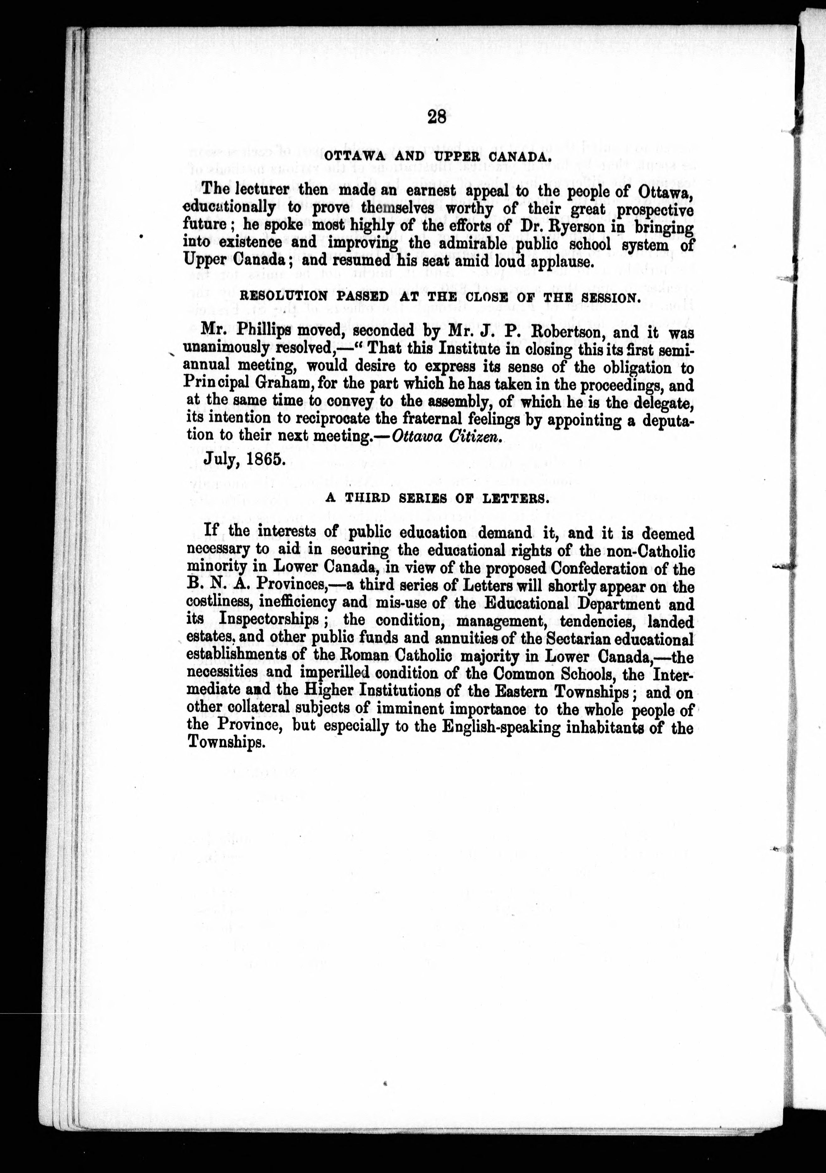 - Letters on public education in Lower Canada