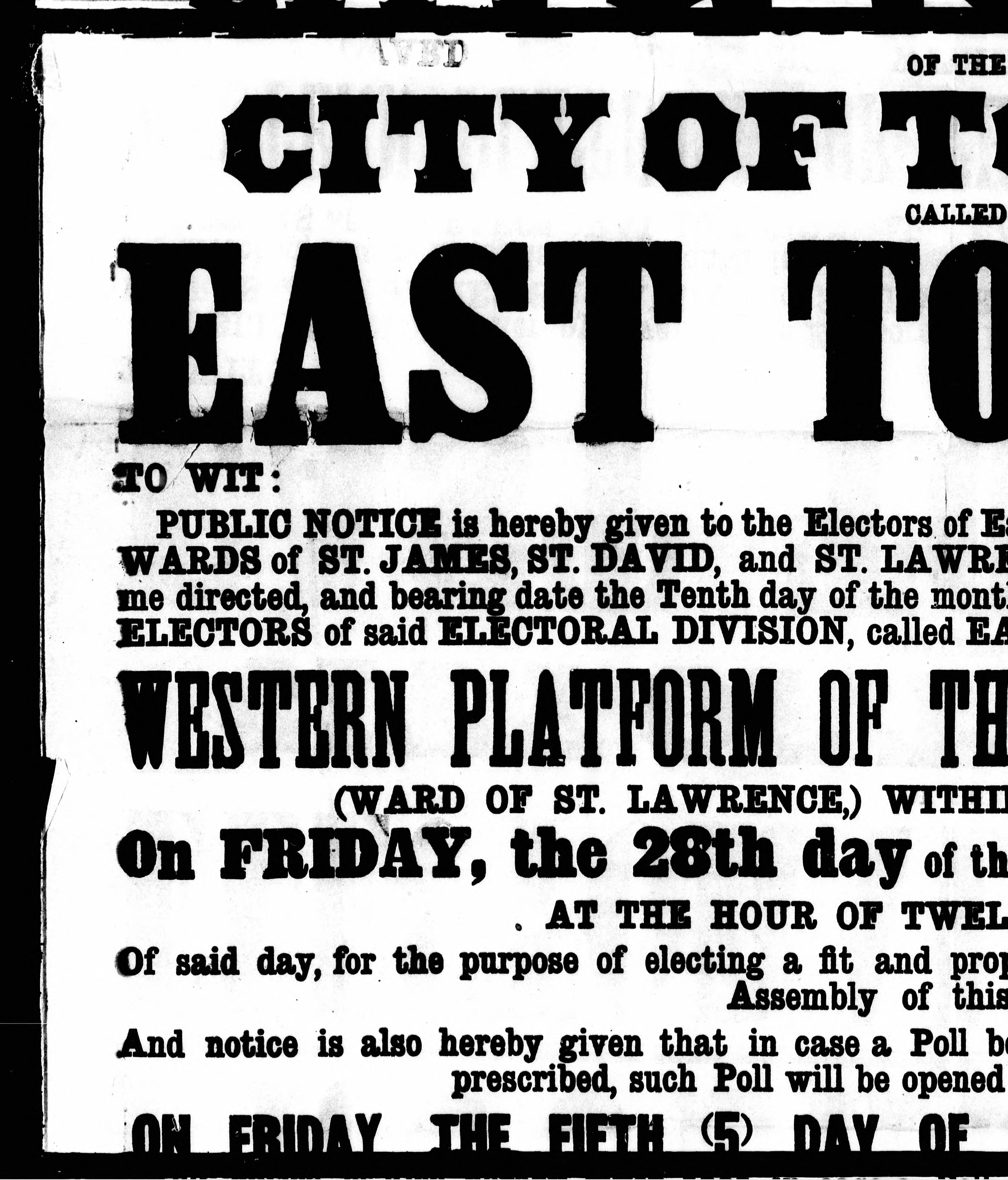 Proclamation : electoral division of the city of Toronto called East Toronto to wit: public notice is hereby given to the electors ..