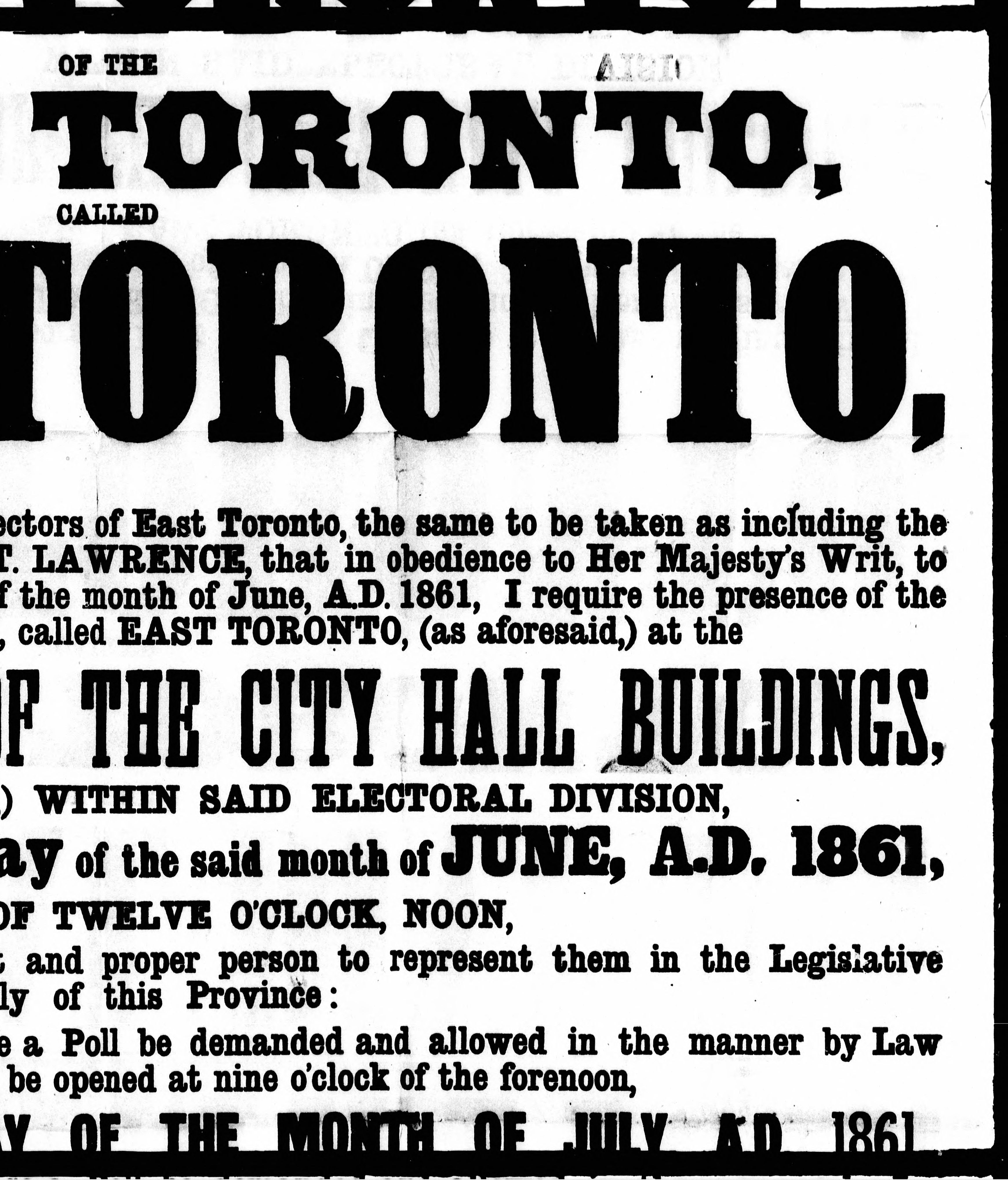 Proclamation : electoral division of the city of Toronto called East Toronto to wit: public notice is hereby given to the electors ..