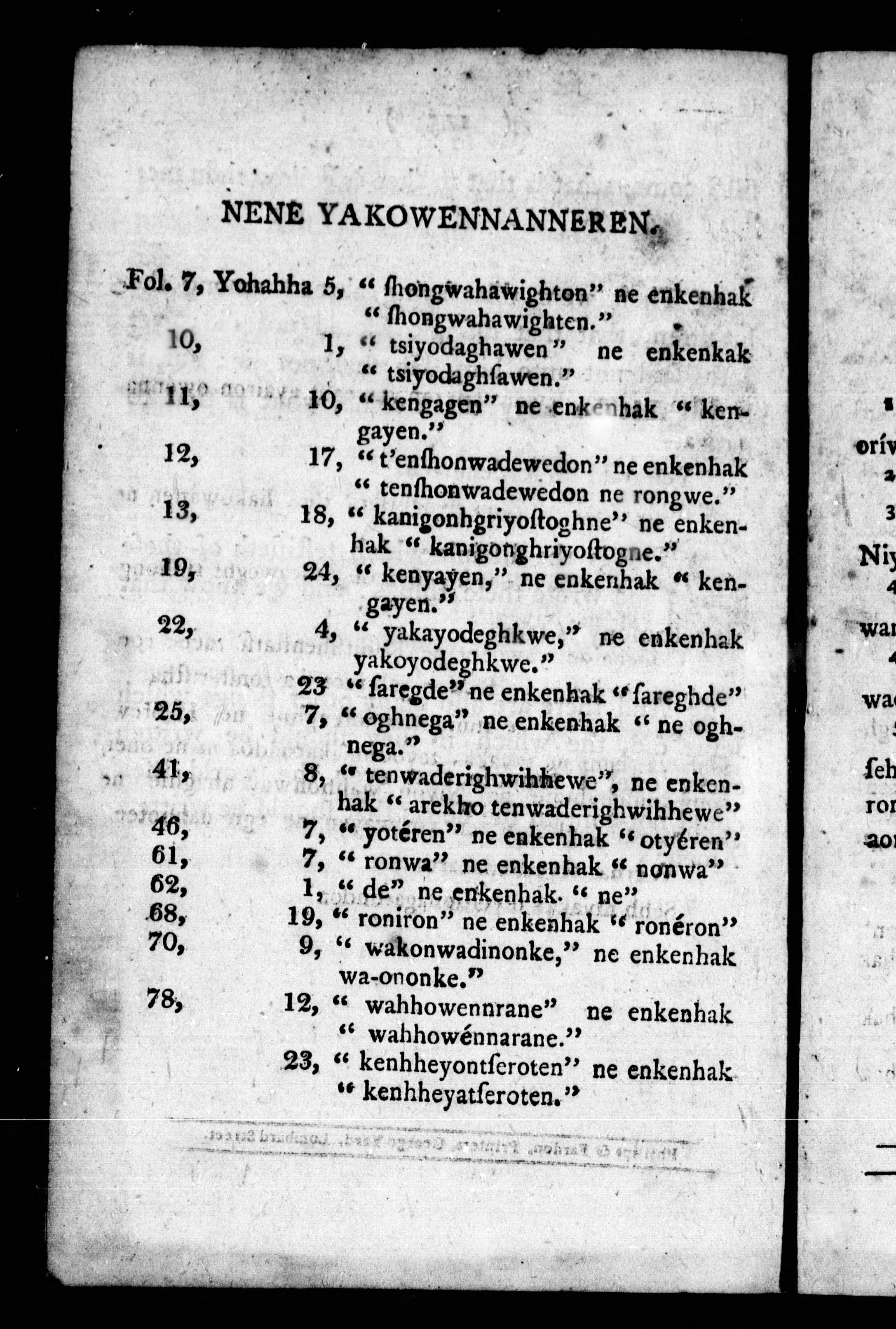 Mohawk version attributed to John Norton--Bibliographies of the languages of the North American Indians / J.C. Pilling.