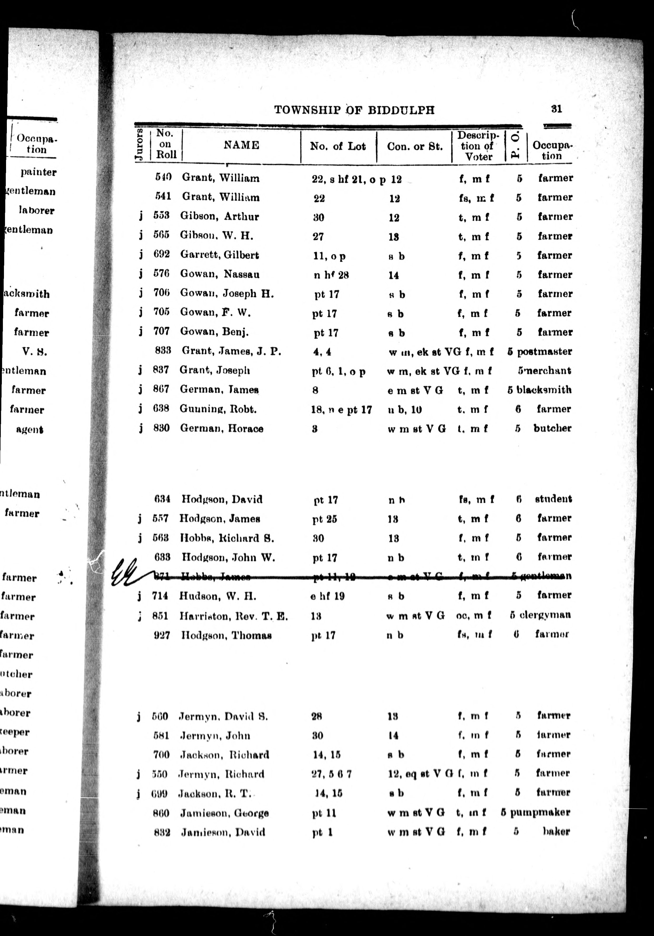 Biddulph (Ont.) -- Listes électorales. - Document original